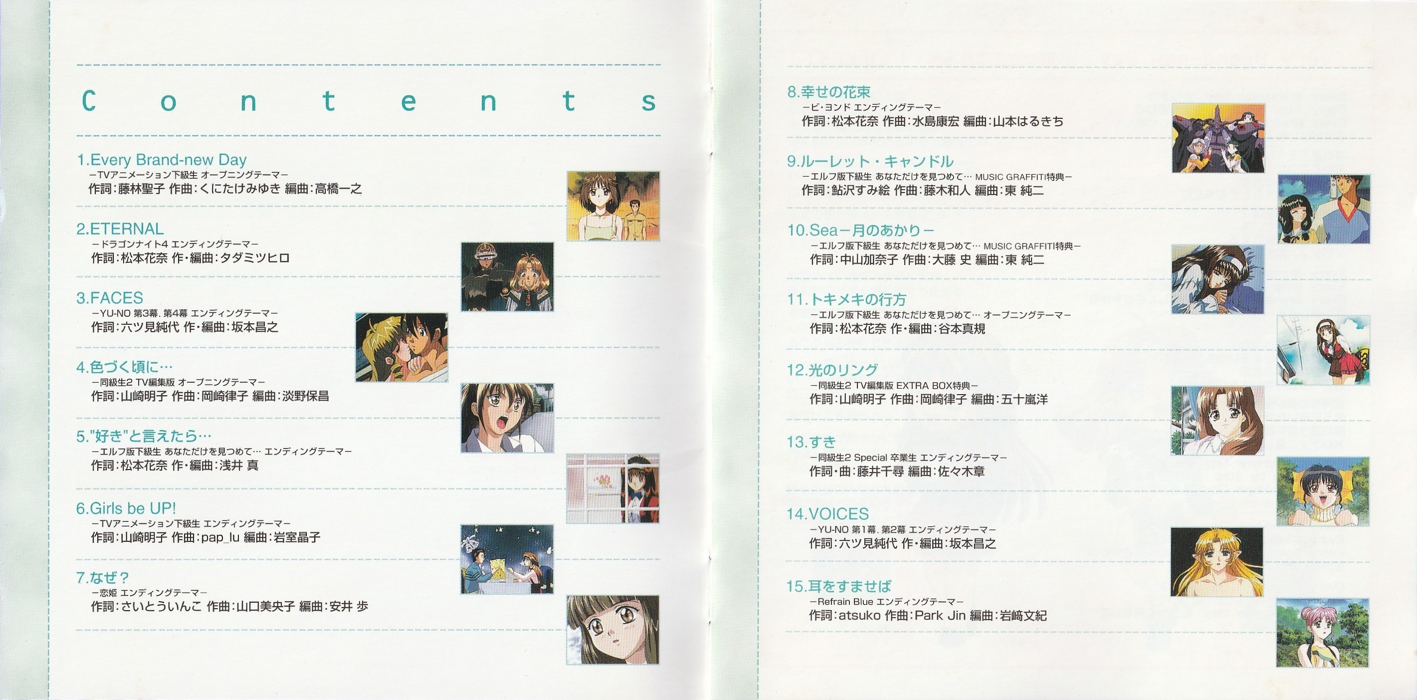 Track 3 and 14 are from YU-NO (Track 3 is the 3rd and 4th ed and Track 14 is the 1st and 2nd ed)