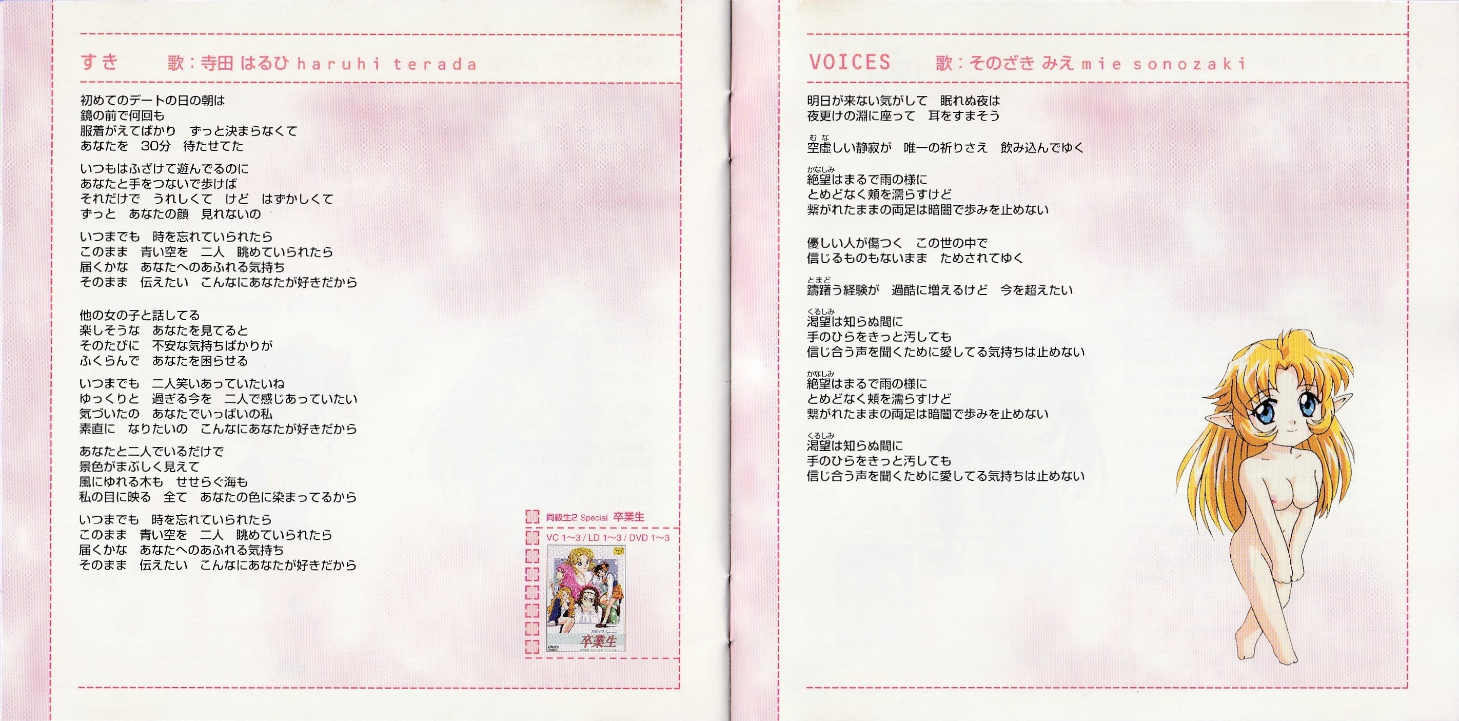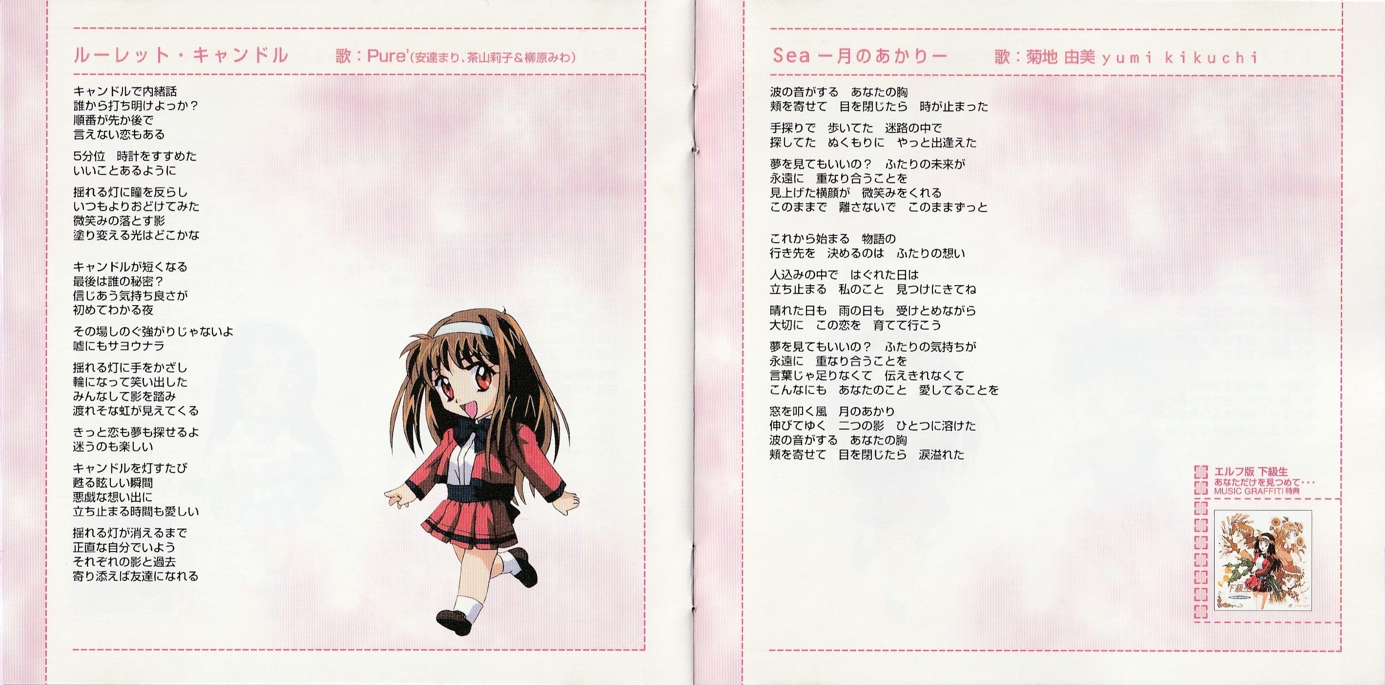 Track 9 and 10 are from Elf ban Kakyuusei: Anata Dake o Mitsumete...MUSIC GRAFFITI特典