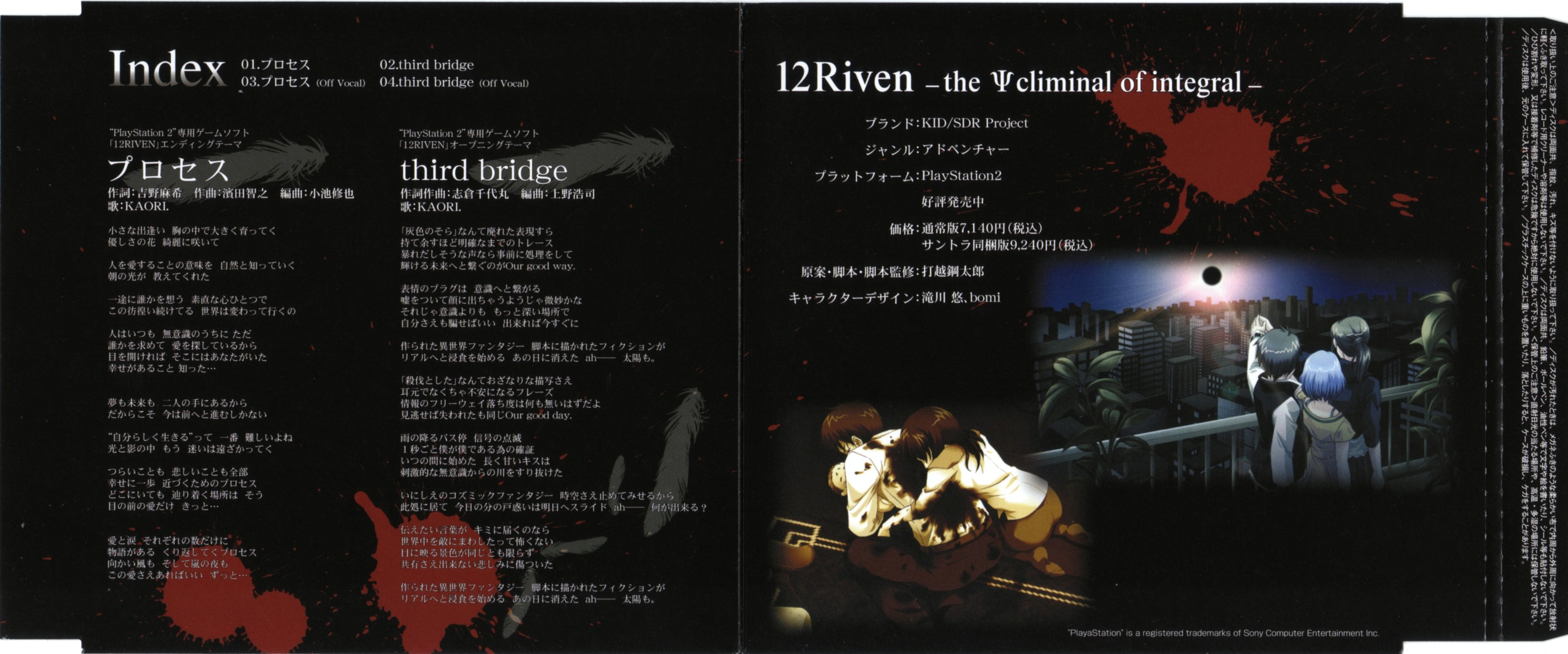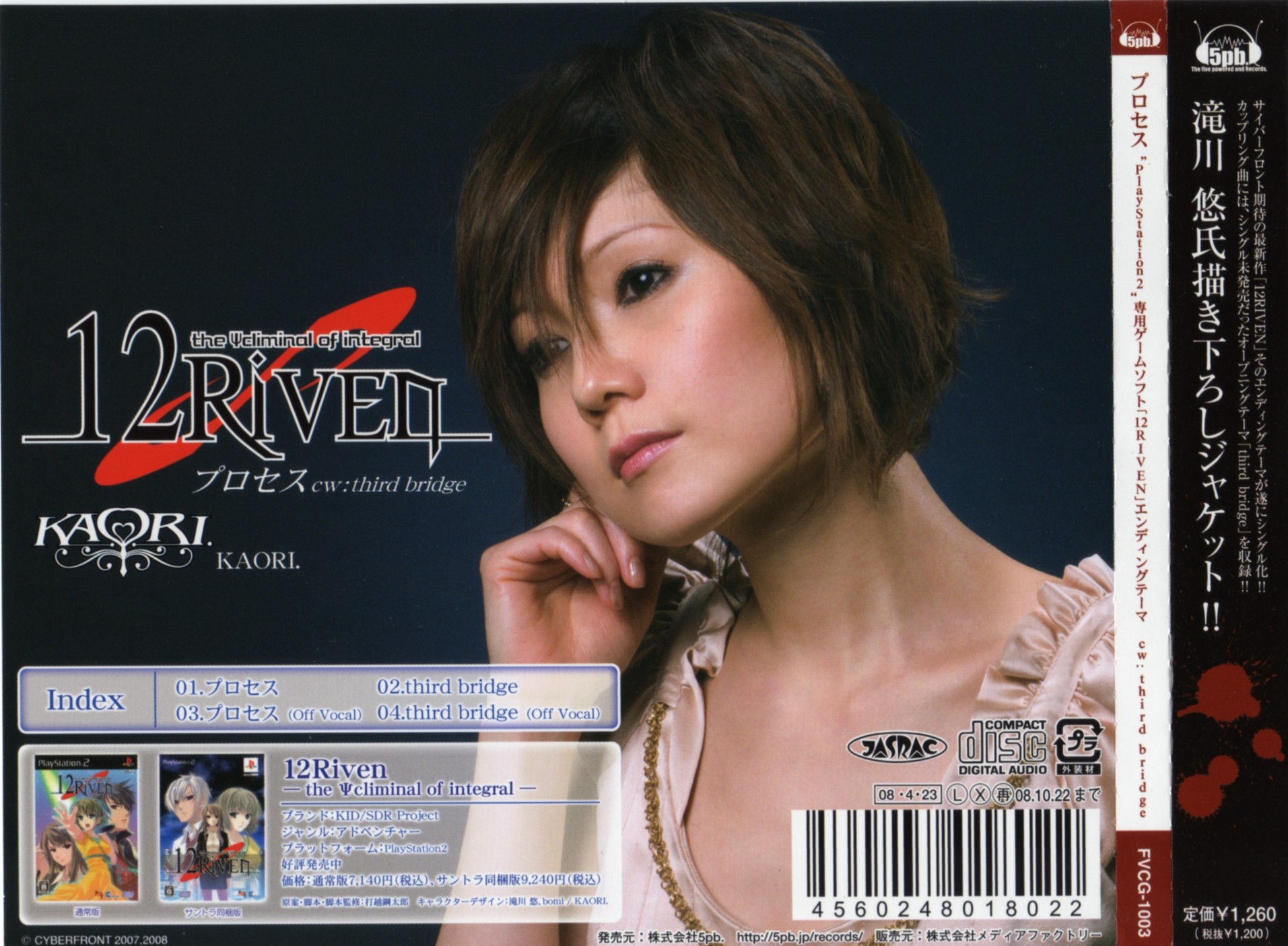 New single release from KAORI and outro theme to the PS2 game "12RIVEN." Also includes intro theme "third bridge."