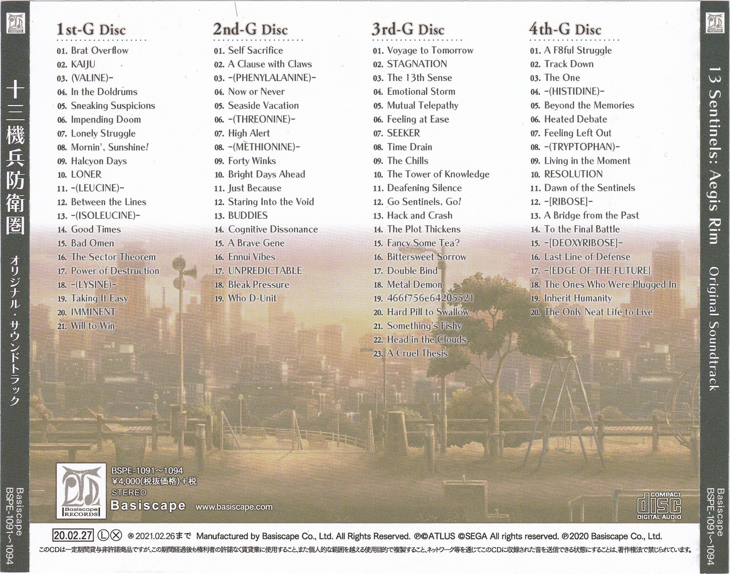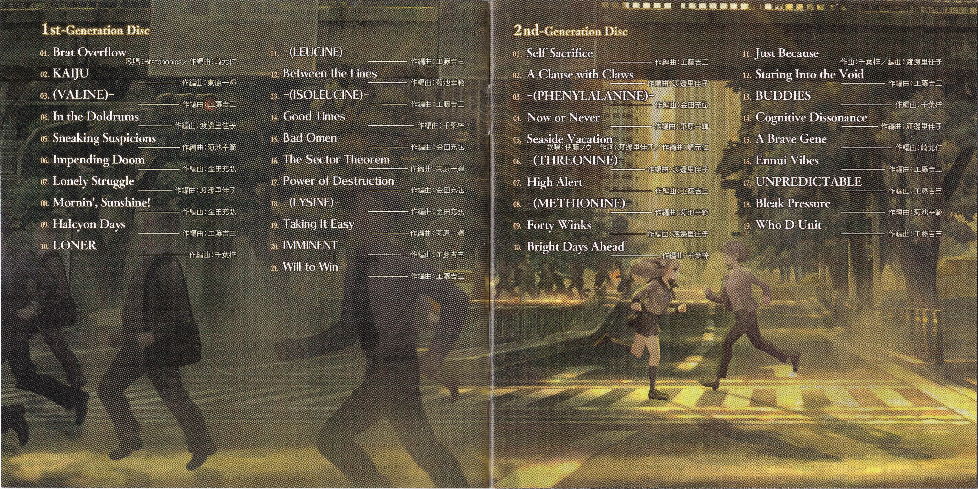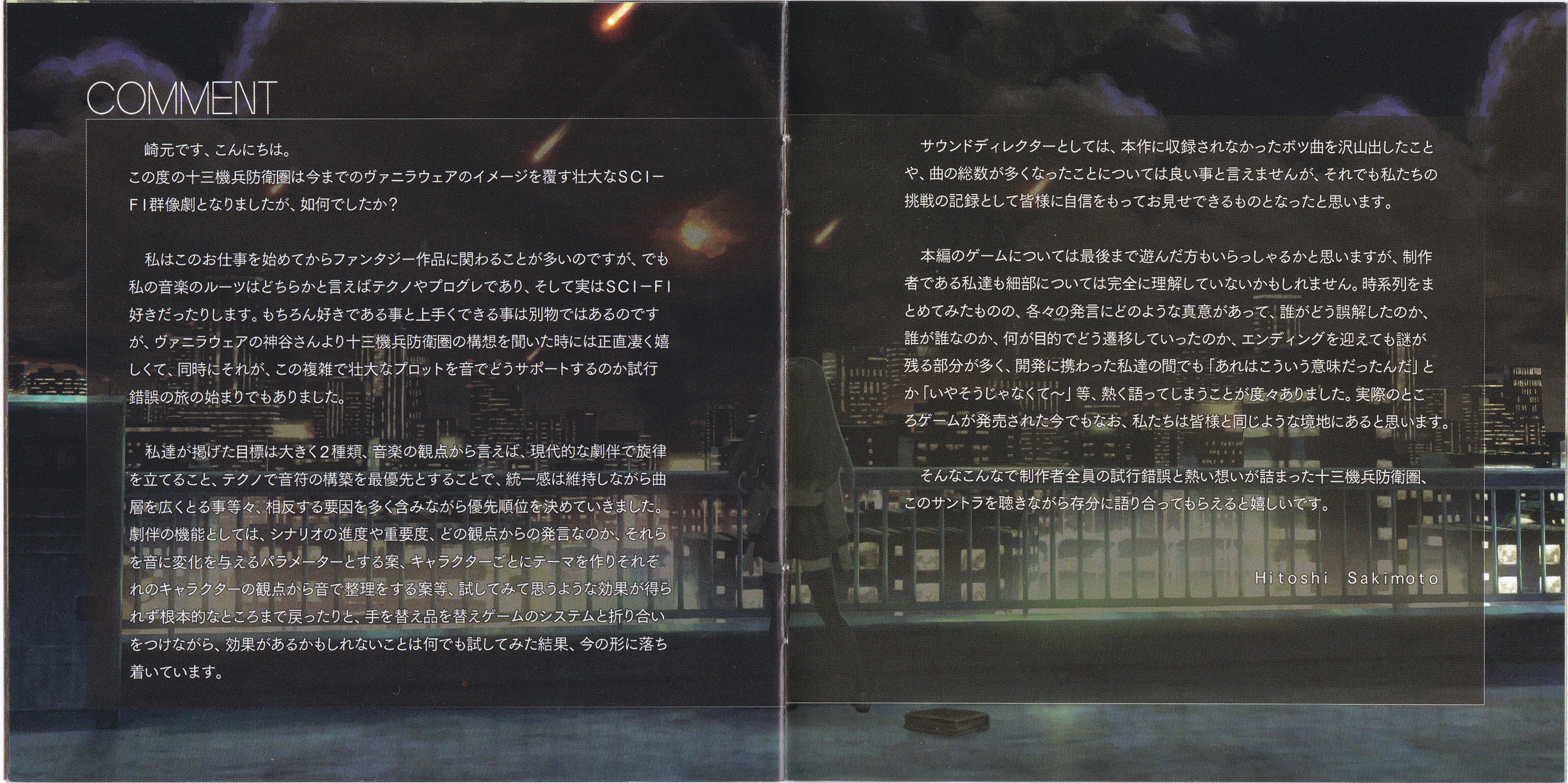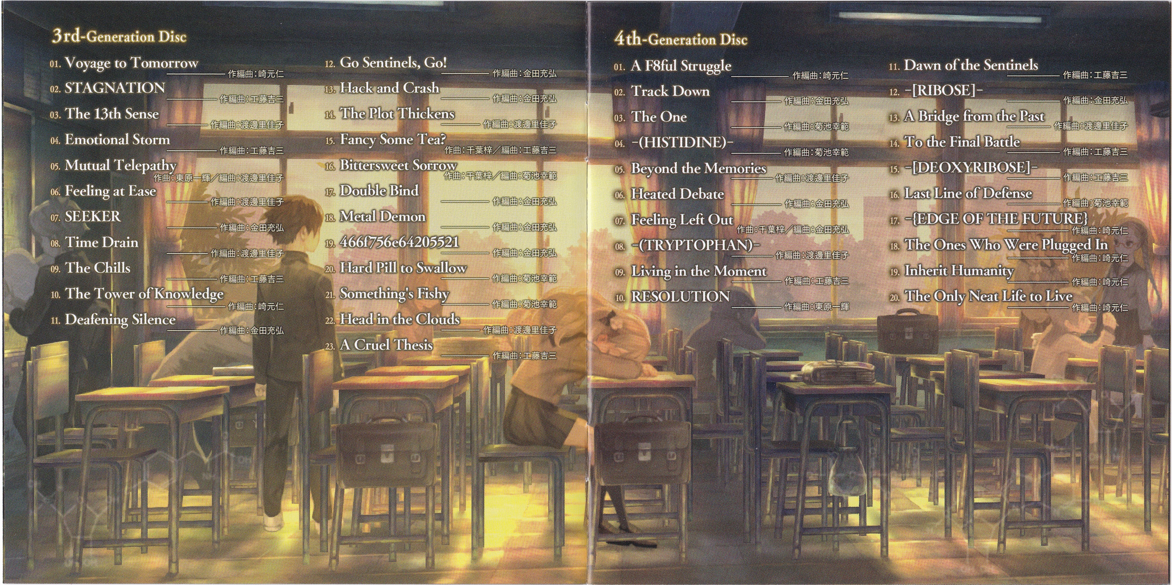 Hitoshi Sakimoto: 1.01, 2.05, 2.15, 3.01, 3.10, 4.01, 4.17~20