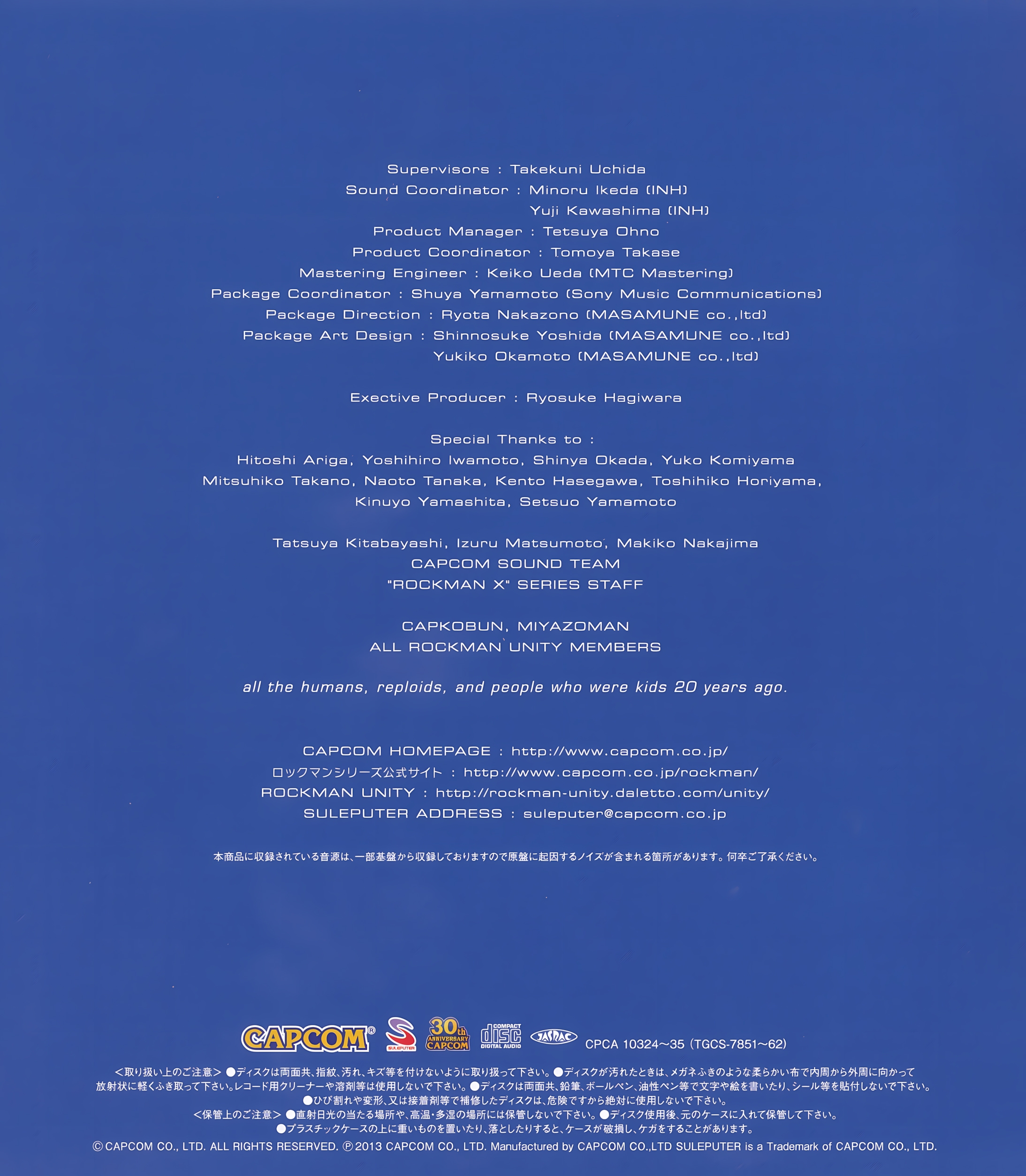 Tatsuya Kitabayashi, Izuru Matsumoto, Makiko Nakajima, CAPCOM SOUND TEAM, "ROCKMAN X" SERIES STAFF