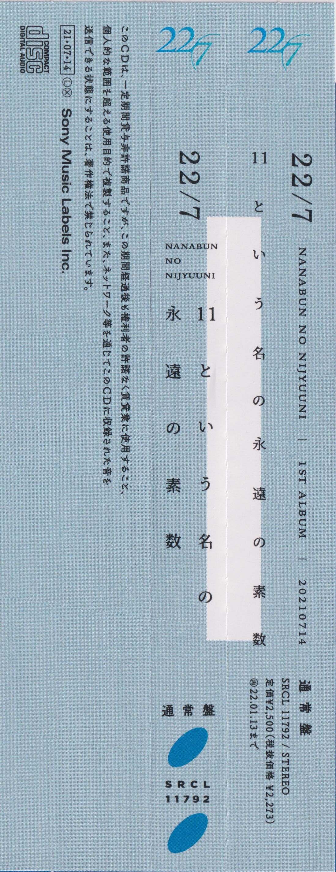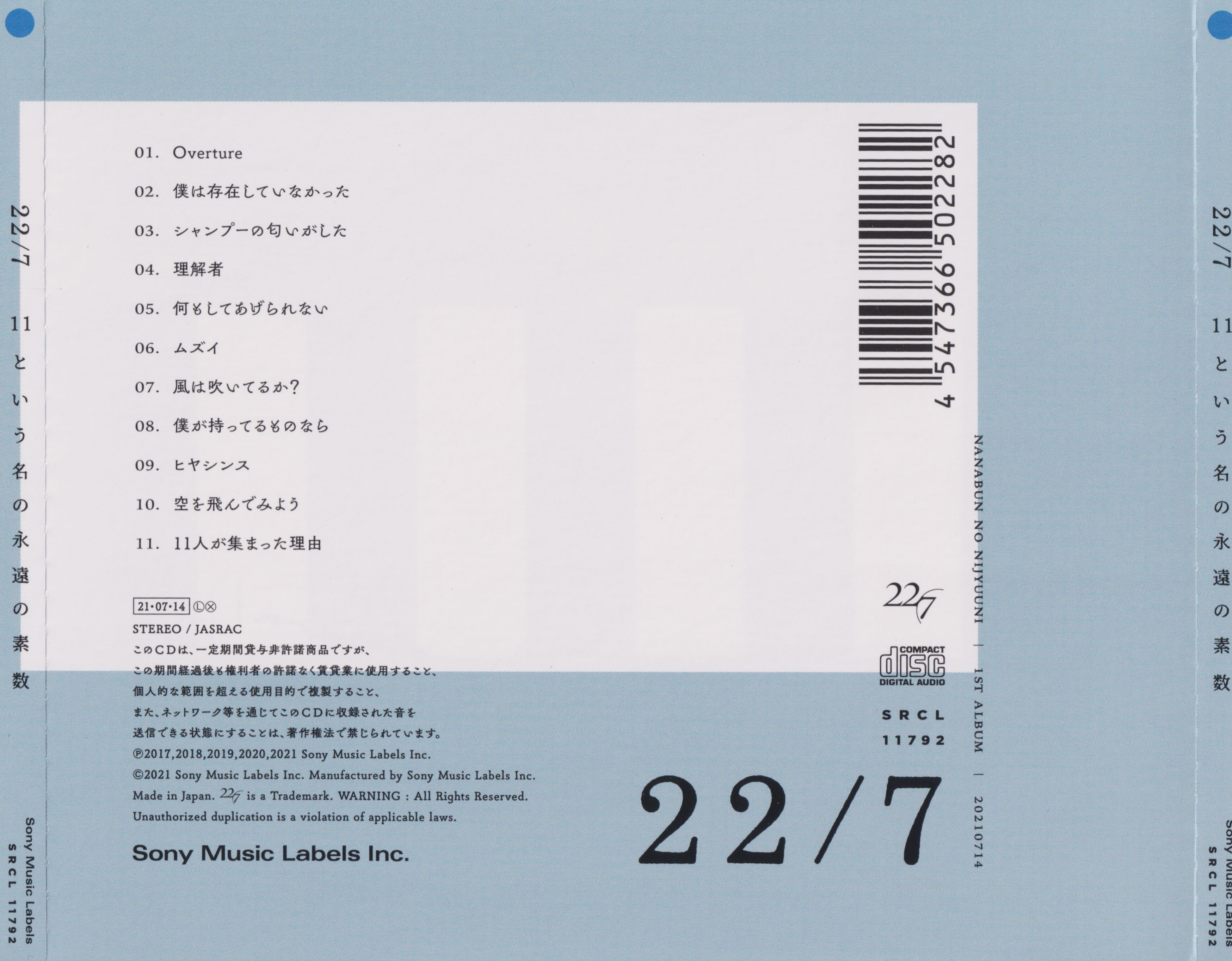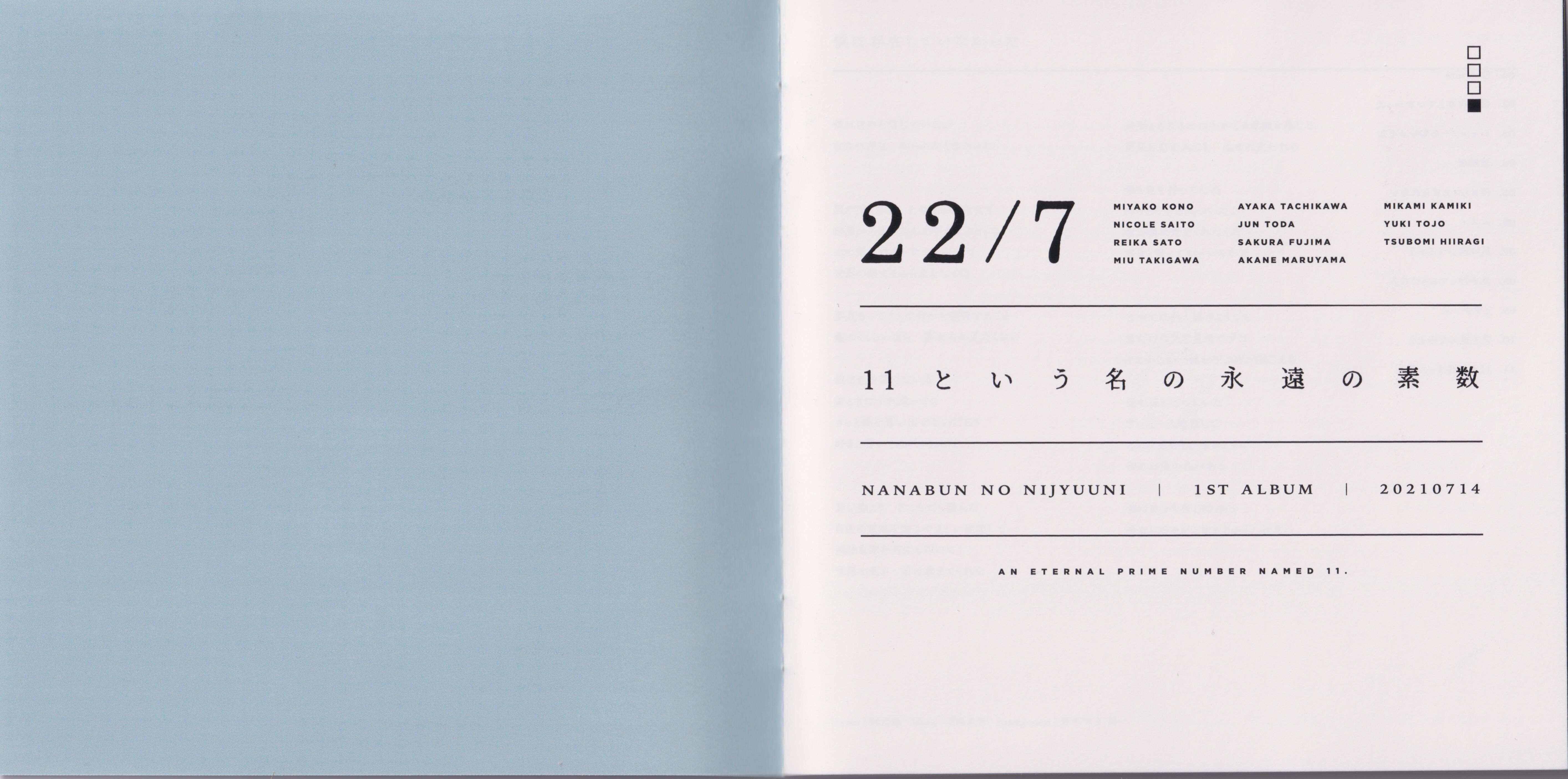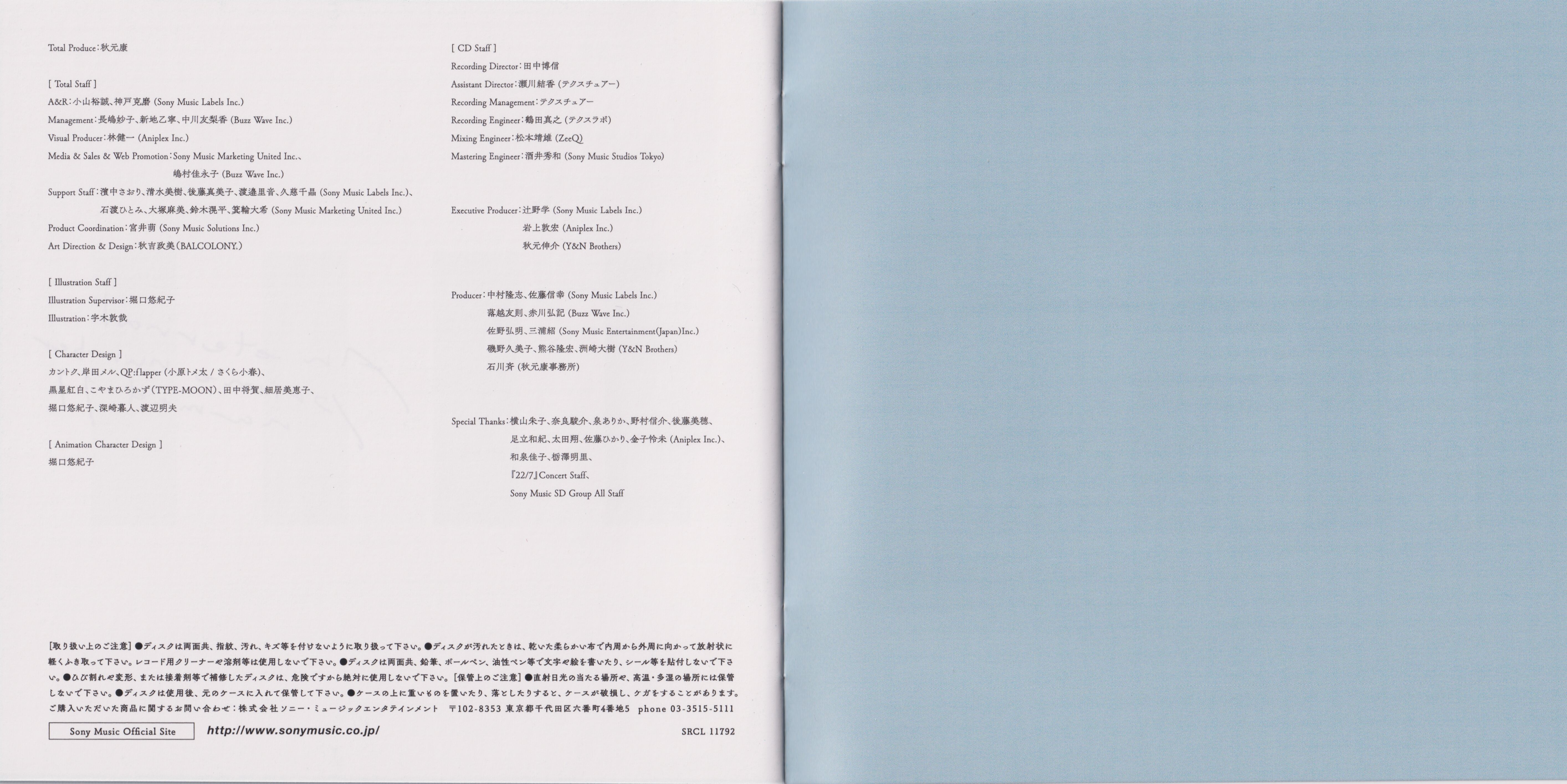 Special Thanks: Shuko Yokoyama, Shunsuke Nara, Arika Izumi, Shinsuke Nomura, Miho Goto, Kazuki Adachi, Sho Ohta, 佐藤ひかり, 金子怜未 (Aniplex Inc.), Keiko Izumi, 栃澤明里, "22/7" Concert Staff, Sony Music SD Group All Staff