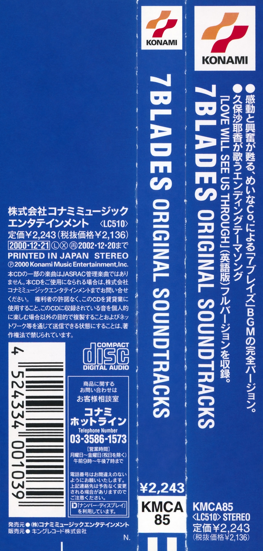 Special Thanks to KCE Japan, 7Blades Team, S-One T-Three, Mark Yokozawa (Rock Records), Takashi Kimura (Rock Music Publishing) and Kaizo Hayashi