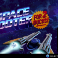 A Space Shooter for 2 Bucks! is a vertically-scrolling shooter set in space and with a humorous tone. The player controls the testosterone-pumped commander P. Jefferson, the space pilot of the USS Eradicator, who sets out to destroy X, the Supreme Alien God Emperor, and bring peace to the universe. Along the way he is accompanied by Edgar IV, the ship's British, sentient navigation system. The space ship can freely move around the screen while the background scenery scrolls vertically and many waves of enemies need to be defeated. There is a basic weapon with double cannons, different special weapons and an overdrive function. Between missions there are static cut-scenes showing the characters with voice-acting.
