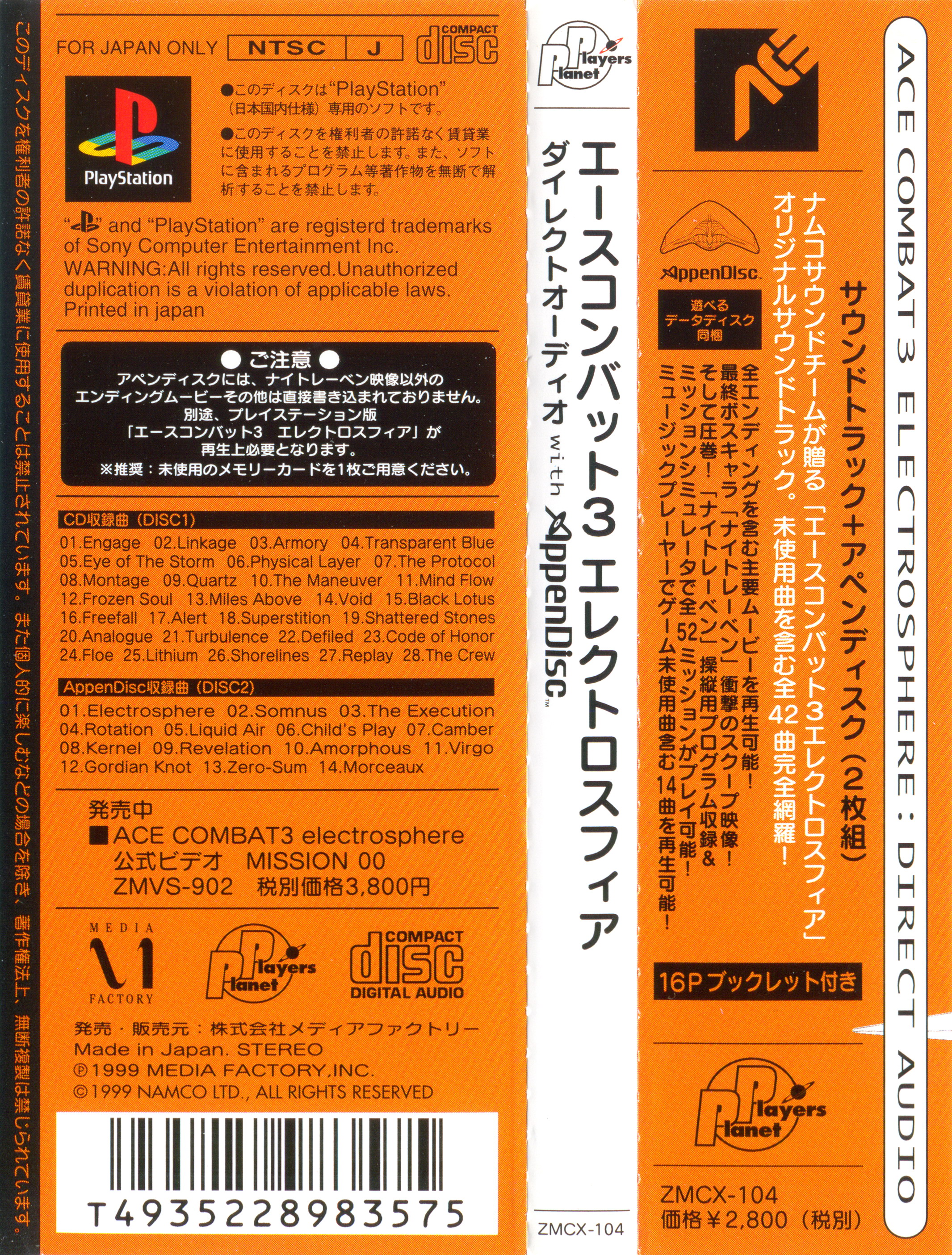 NAMCO "ACE COMBAT 3 electrosphere" SOUND TEAM