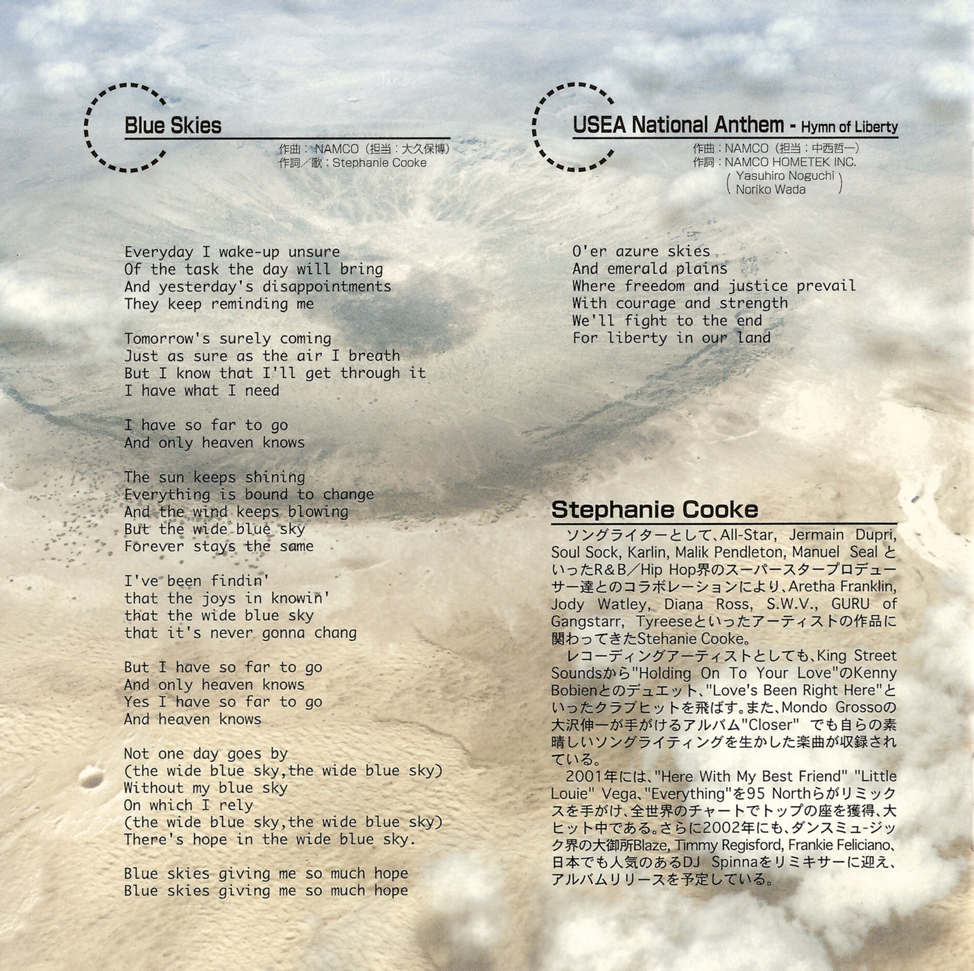 Lyrics by: NAMCO HOMETEK INC. (Yasuhiro Noguchi, Noriko Wada)