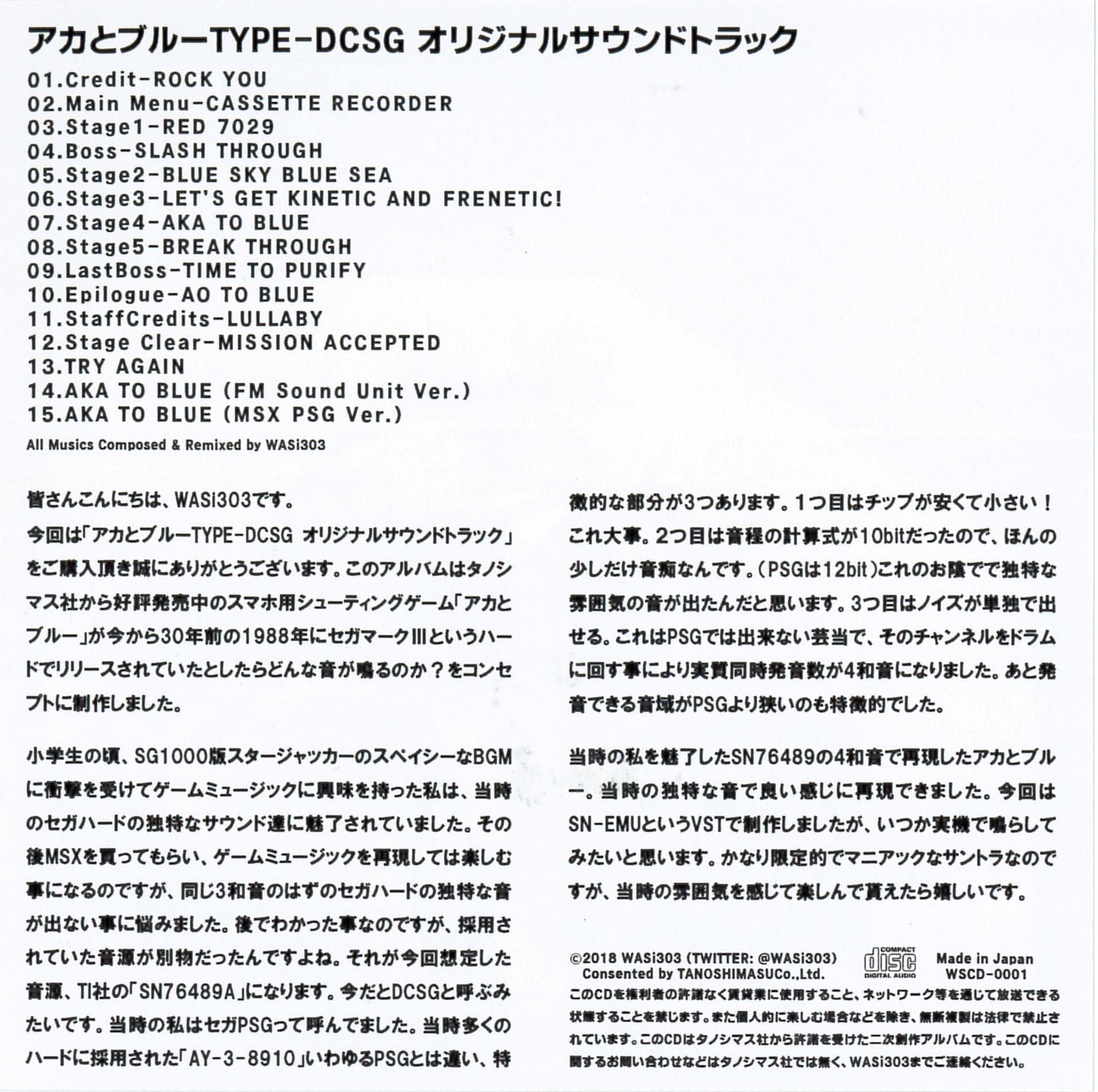 アカとブルーTYPE-DCSGオリジナルサウンドトラック