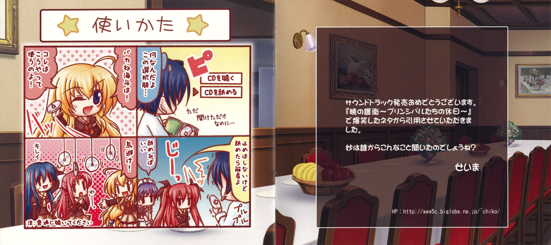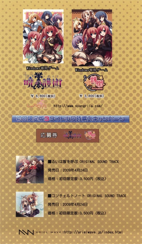 ** Shunsuke Shiina is uncredited on the album. His composition and arrangement of this song are verified through AKABEi SOFT2 5years Anniversary Song Collection [DIFE-1001~3] and Angel Note's site.