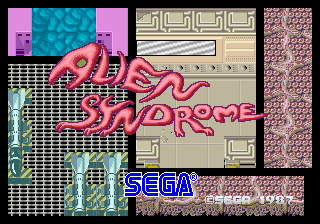 Two players control two soldiers, named Ricky and Mary, who fight their way through large eight-way scrolling levels while rescuing their comrades who are being held by aliens. At the beginning of each level, a time bomb is set onboard the infested ship and the players must complete their task before it runs out which will result in the ship being destroyed. After they have rescued a certain number of hostages, the exit opens and they can pass through it in order to fight the end-of-level guardian. If this monstrosity is defeated before times runs out, they are then able to move onto the next stage. Once all seven levels are completed, the game starts over again with more aggressive aliens, and less time on the countdown to finish the levels. Alien Syndrome features two player simultaneous gameplay and pickups, including better weapons and maps of the current level.