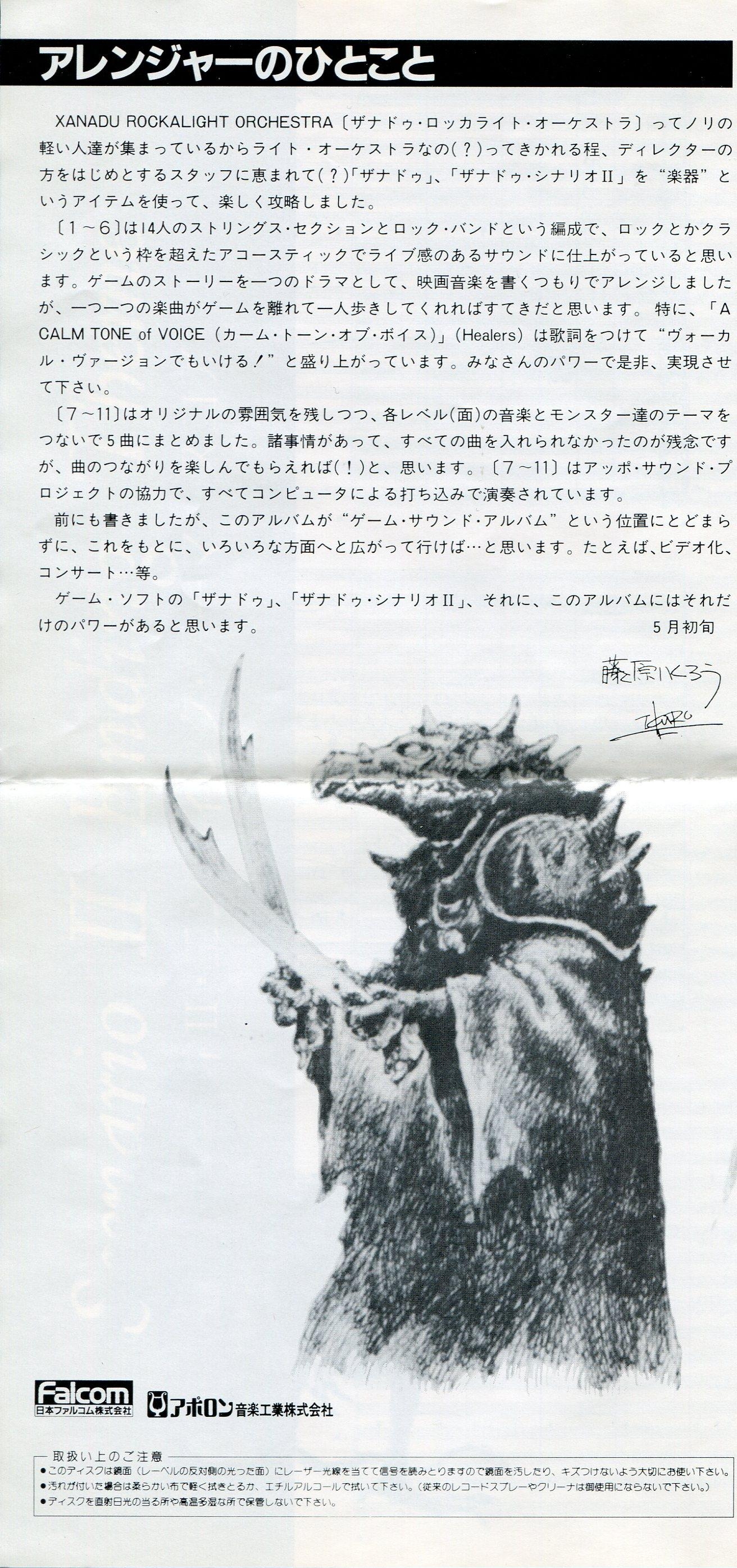 This CD contains arrangements from Dragon Slayer II.