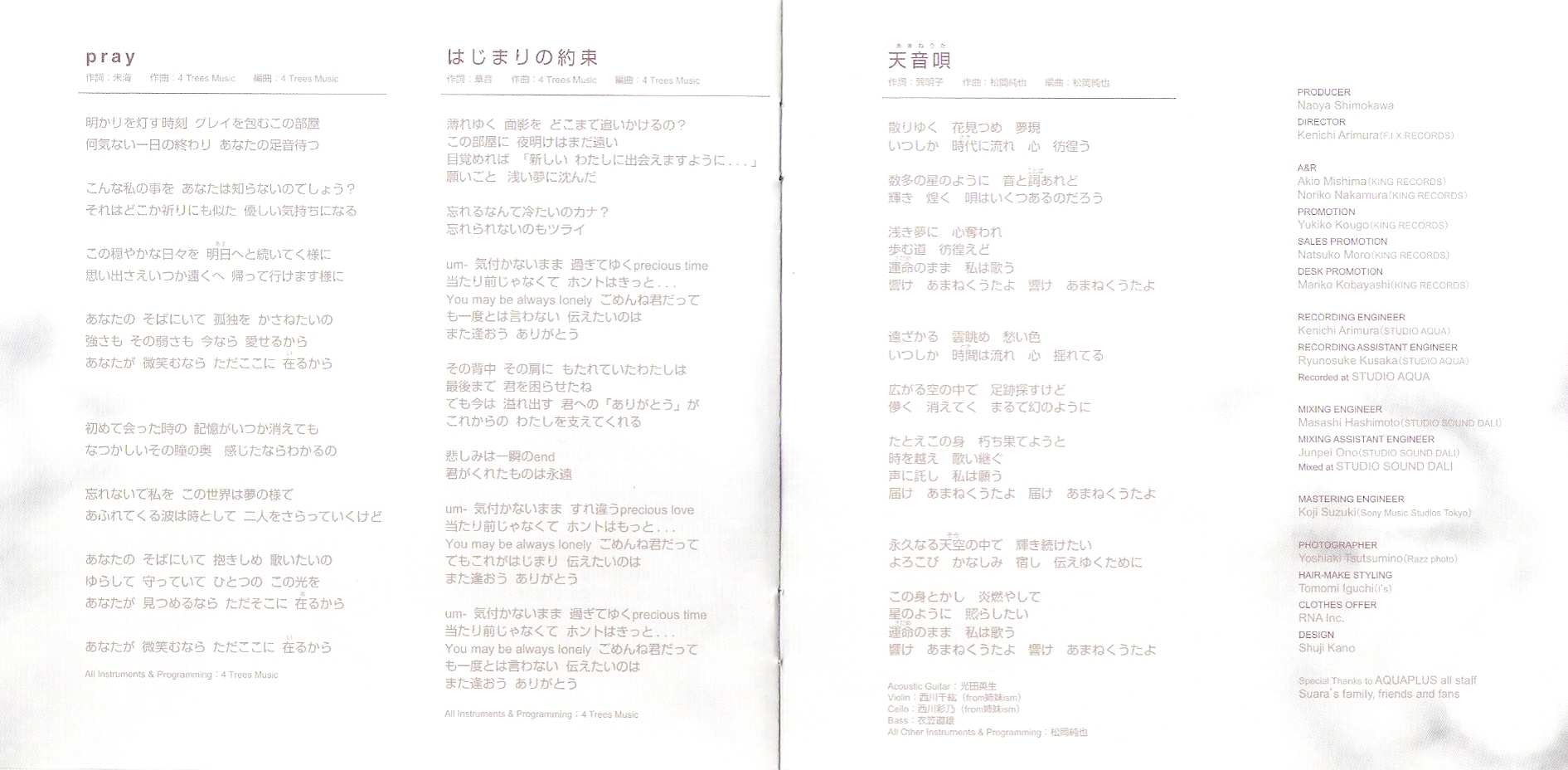 A&R: Akio Mishima (KING RECORDS), Noriko Nakamura (KING RECORDS)
