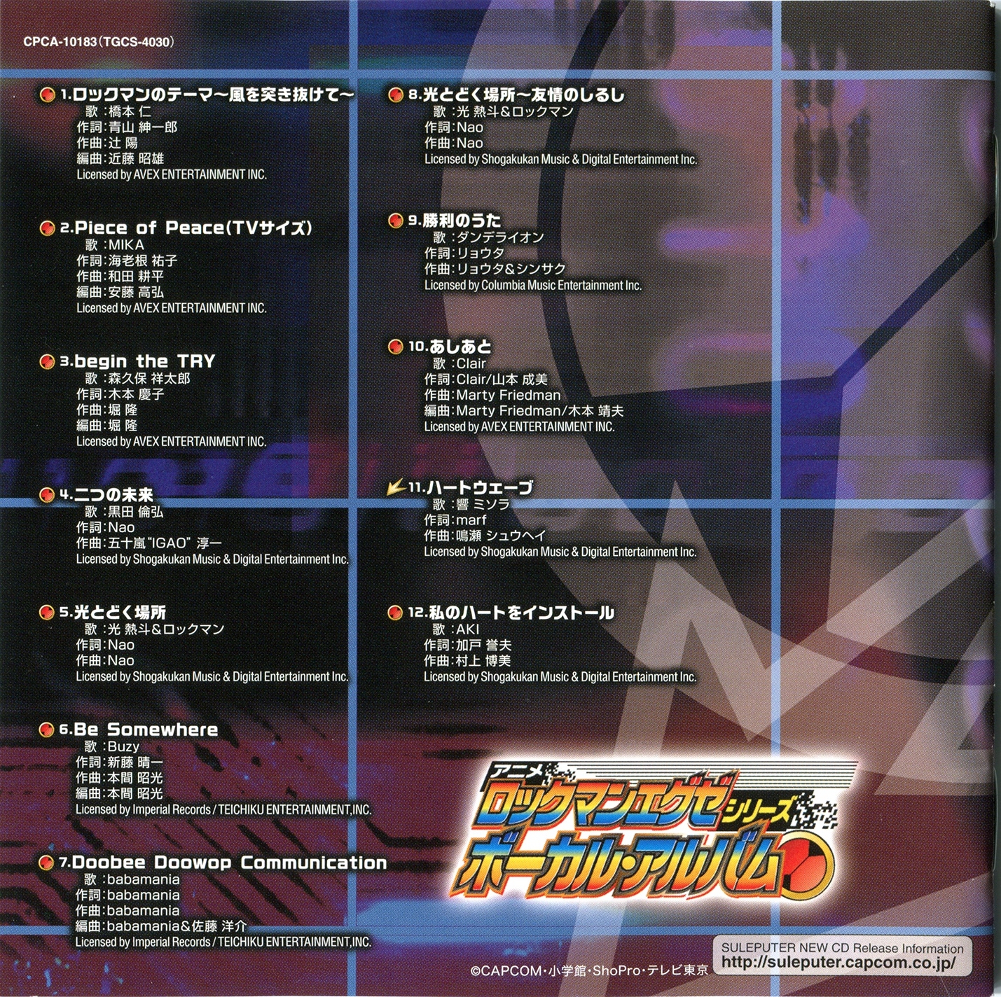 Special Thanks: HIROMI TERADA (AVEX GROUP HOLDINGS), ASAMI ARAKAWA (TEICHIKU ENTERTAINMENT), IZUMI SUGAWARA (COLUMBIA MUSIC ENTERTAINMENT), TAKESHI HORINOUCHI (CAPCOM)