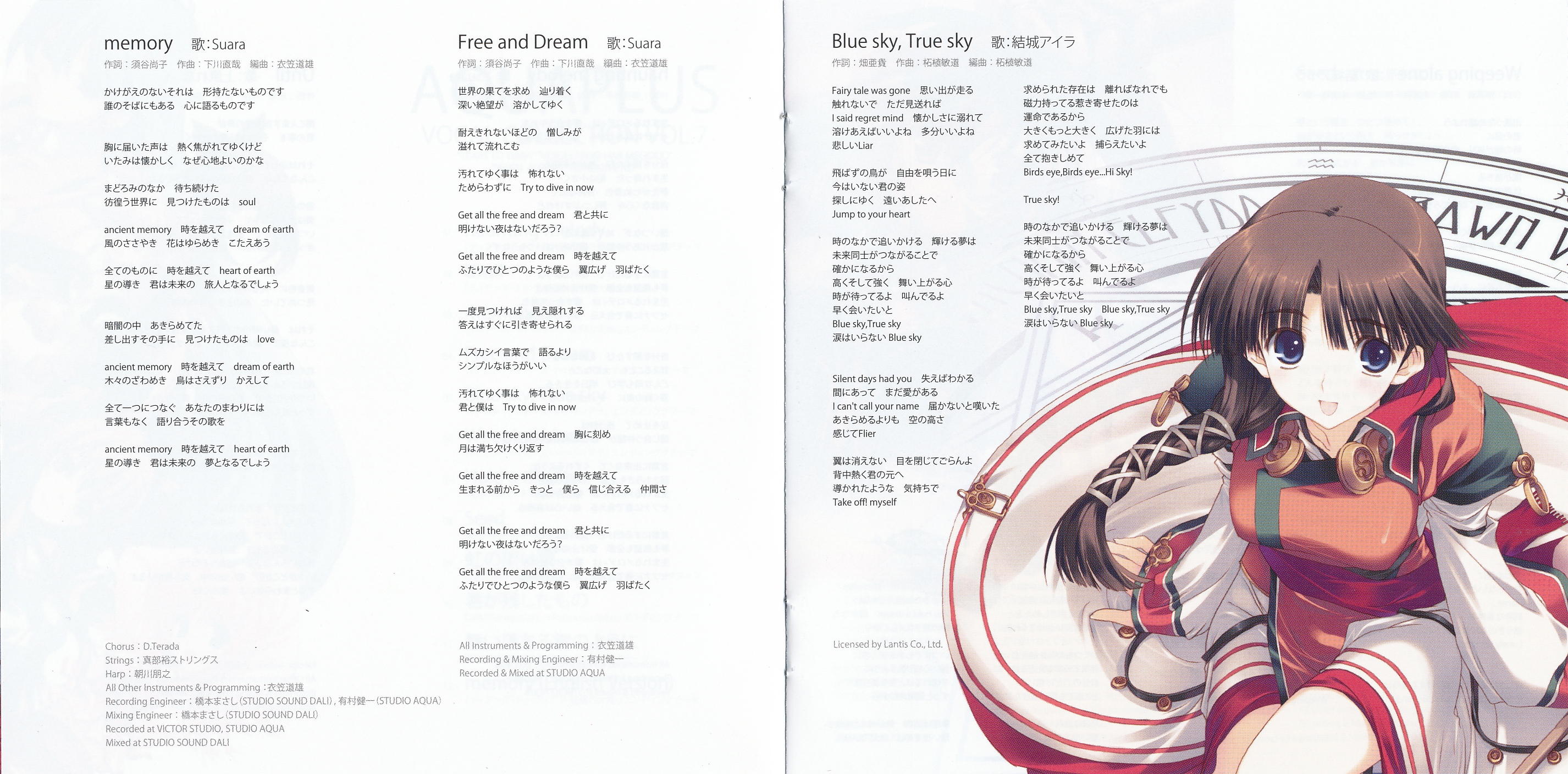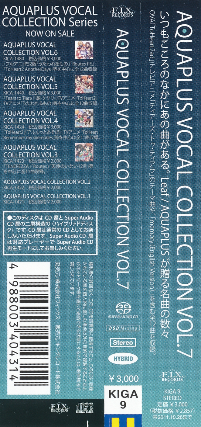 Special Thanks to Shunji Inoue (Lantis), Katsumi Koike (Lantis), Akiho Matsuo (Lantis), Jin Kano (FACE MUSIC), Junpei Ohno (STUDIO SOUND DALI), 藤田麻友子 (STUDIO SOUND DALI), 熊坂三保 (Sony Music Communications), AQUAPLUS/Leaf all staff