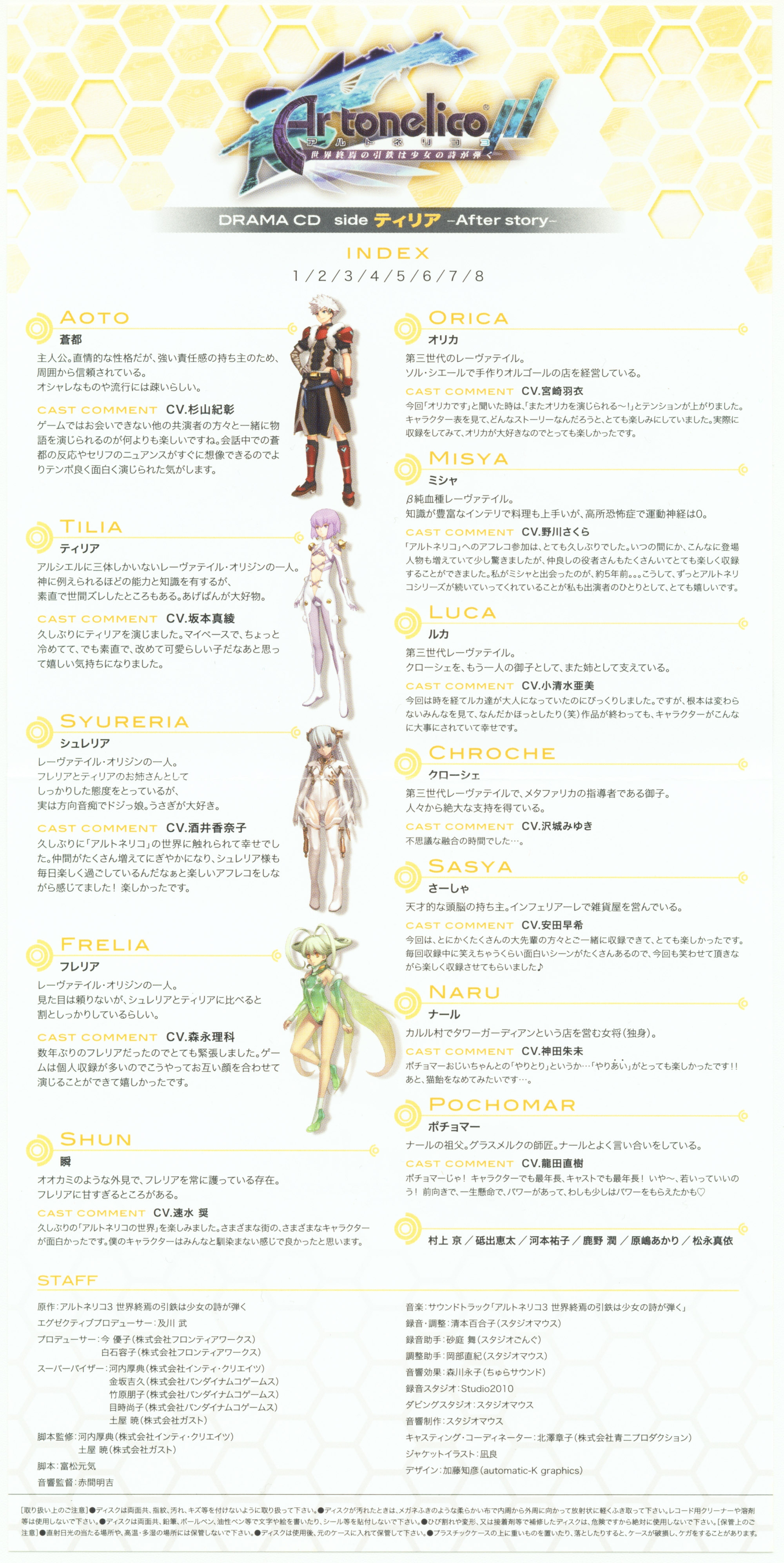 Supervisor: Atsunori Kawachi (INTI CREATES Co., Ltd.), Yoshihisa Kanesaka (NAMCO BANDAI Games Inc.), Tomoko Takehara (NAMCO BANDAI Games Inc.), Shoko Metoki (NAMCO BANDAI Games Inc.), Akira Tsuchiya (GUST CO., LTD.)