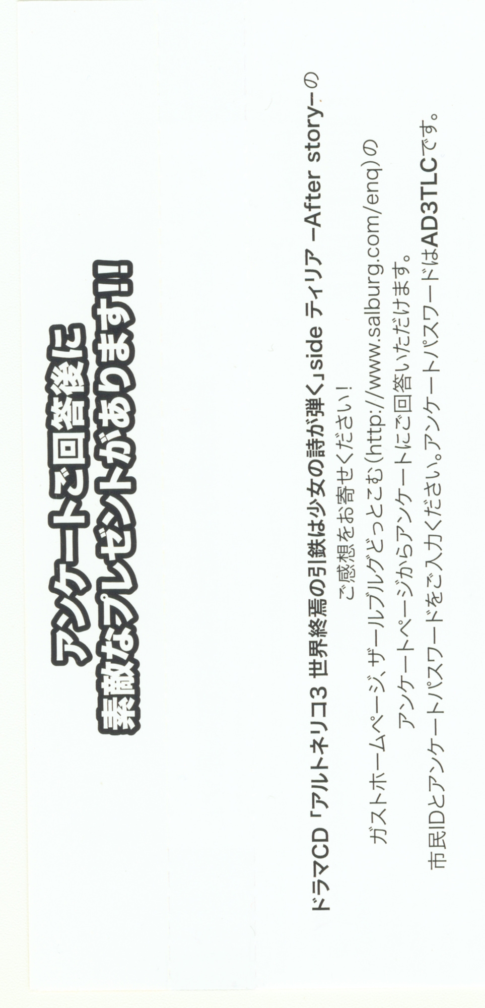 ドラマCD 「アルトネリコ3 世界終焉の引鉄は少女の詩が弾く」 side ティリア ~After story~