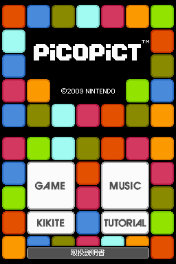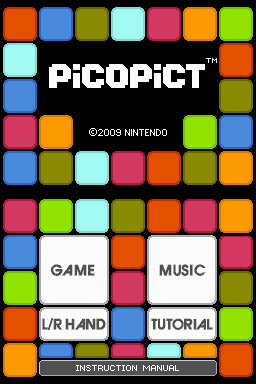 The objective of Picopict is to move coloured blocks from the bottom of the touchscreen under falling blocks of corresponding colors. If a shape is made using the added block, the blocks add to an image on the top screen. For example, if players form a red block sequence, the image will gain as many red blocks as has been cleared, assuming that any blocks of that colour remain to be added. If blocks fall as a result of clearing blocks that were attached to it, they are added to the blocks at the bottom and can be used, though a special variety of block exists that cannot be picked up, forcing players to either clear them before they land or wait for the right blocks to fall on them. As players clear more blocks, they will eventually form an image. These images are of 8-bit renditions of characters from NES games, such as Mario, Link, and Bowser.