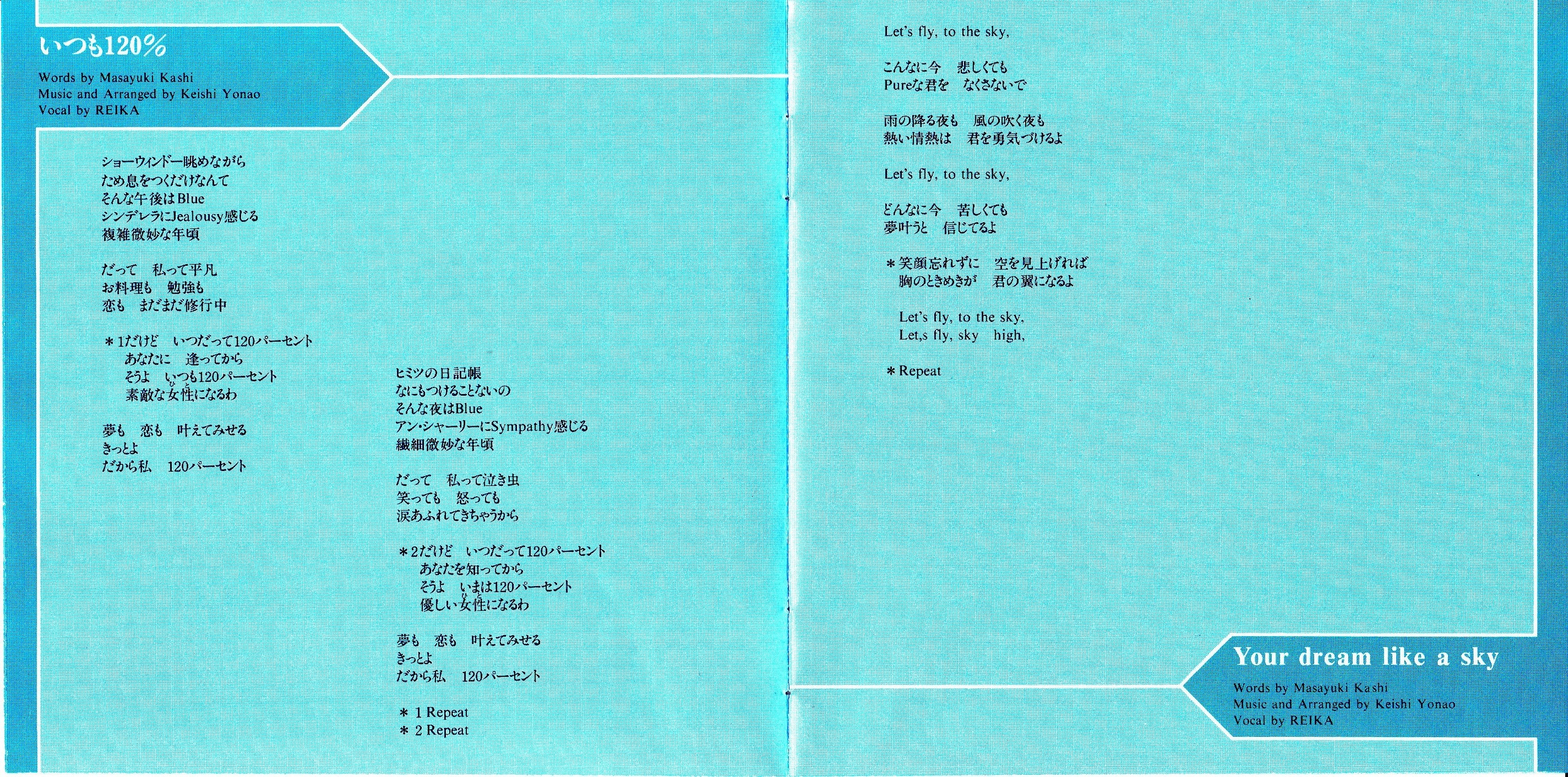 Words by Masayuki Kashi (1, 3, 10), REIKA (6, 8)