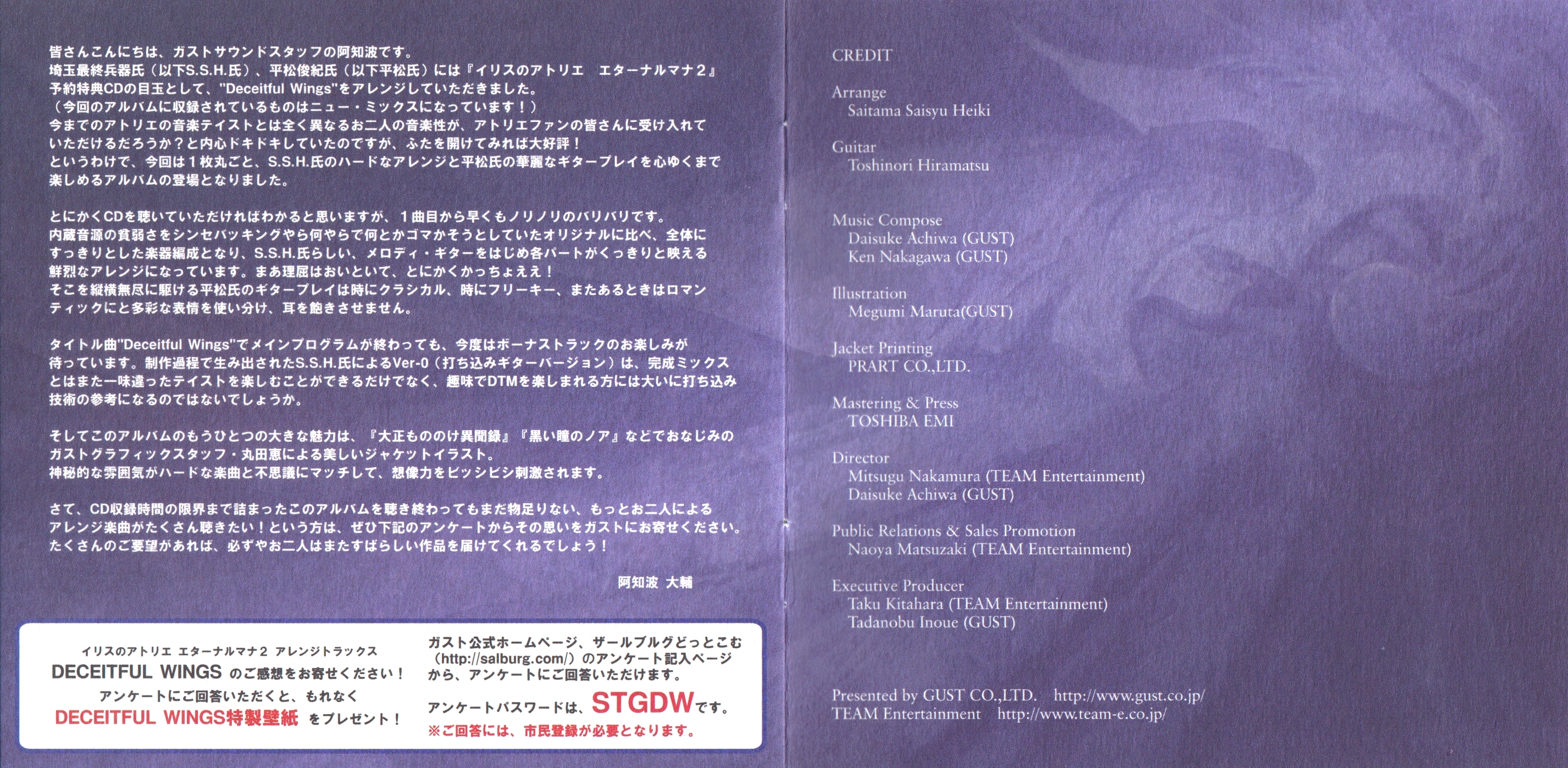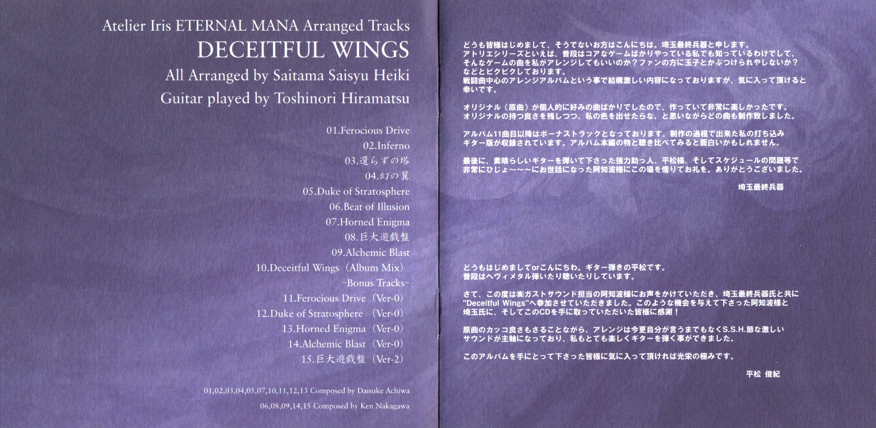 Liner Notes: Saitama Saisyu Heiki (pg. 2), Toshinori Hiramatsu (pg. 2), Daisuke Achiwa (pg. 5)