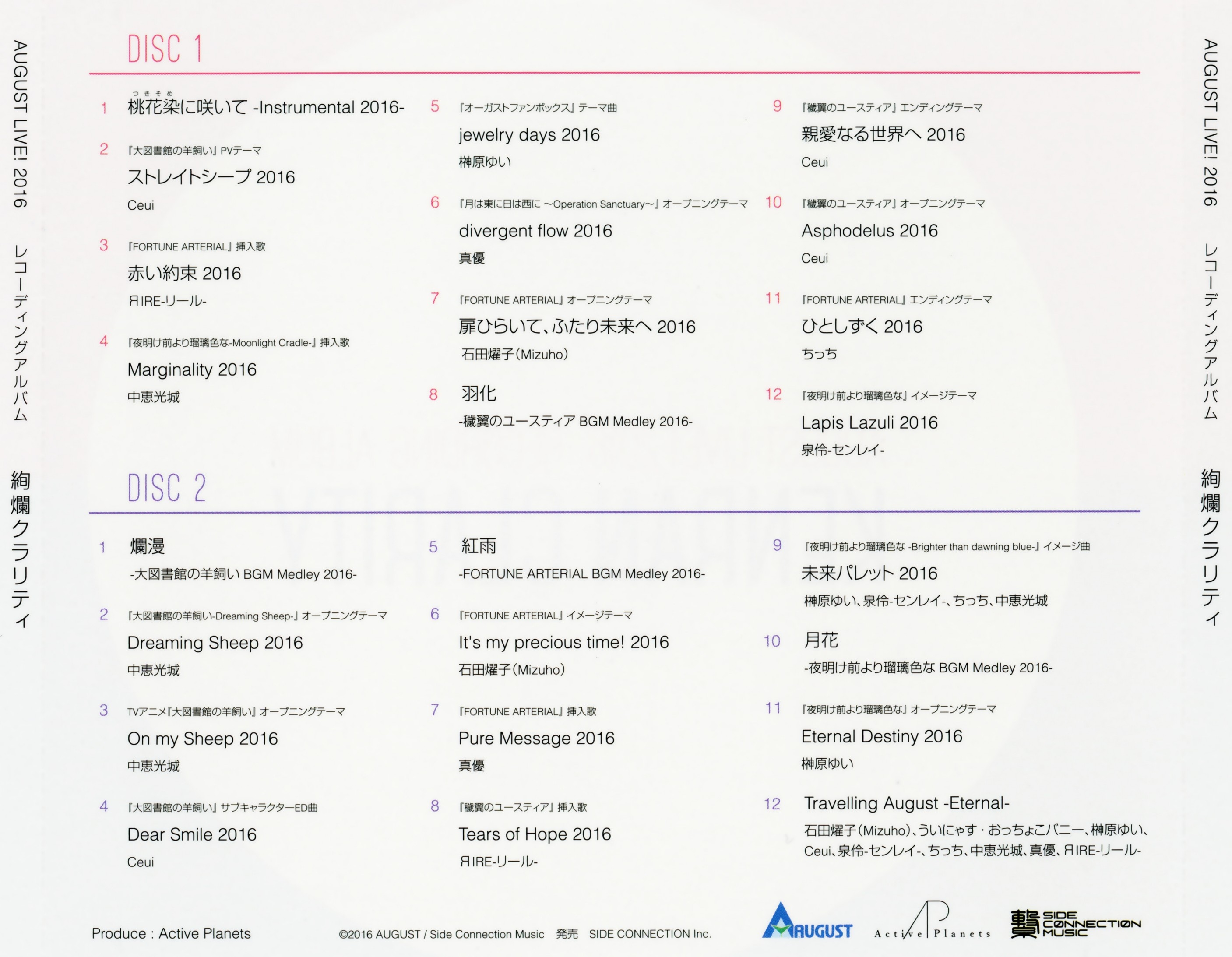 AUGUST LIVE! 2016 レコーディングアルバム 絢爛クラリティ