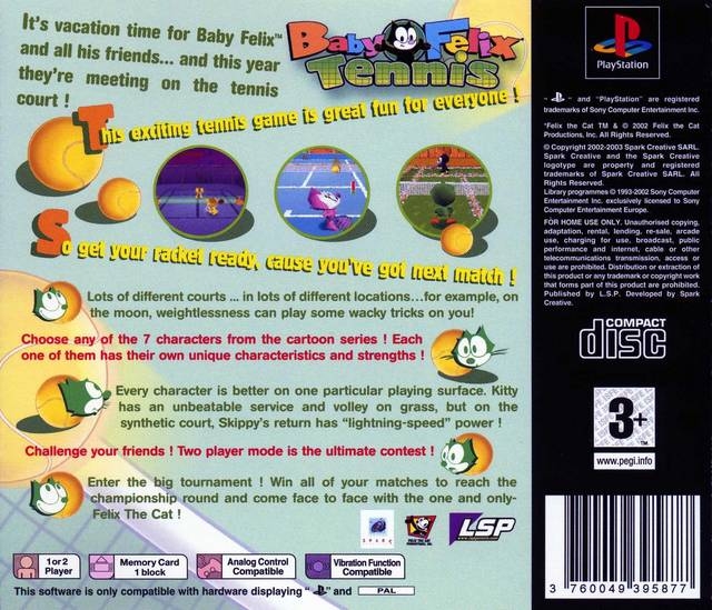 Felix The Cat is one of the oldest popular cartoon characters since 1919. Baby Felix was a kids animated television cartoon that ran in 2000 and featured infant character versions of Joe Oriolo's Felix television cartoon from the fifties. School has ended and summer vacation for Felix and his friends is going to be fun as they will be playing tennis. Players can choose to play as either Baby Felix, Kitty, or Tattoo, plus four others can be unlocked by achieving set challenges in-game.