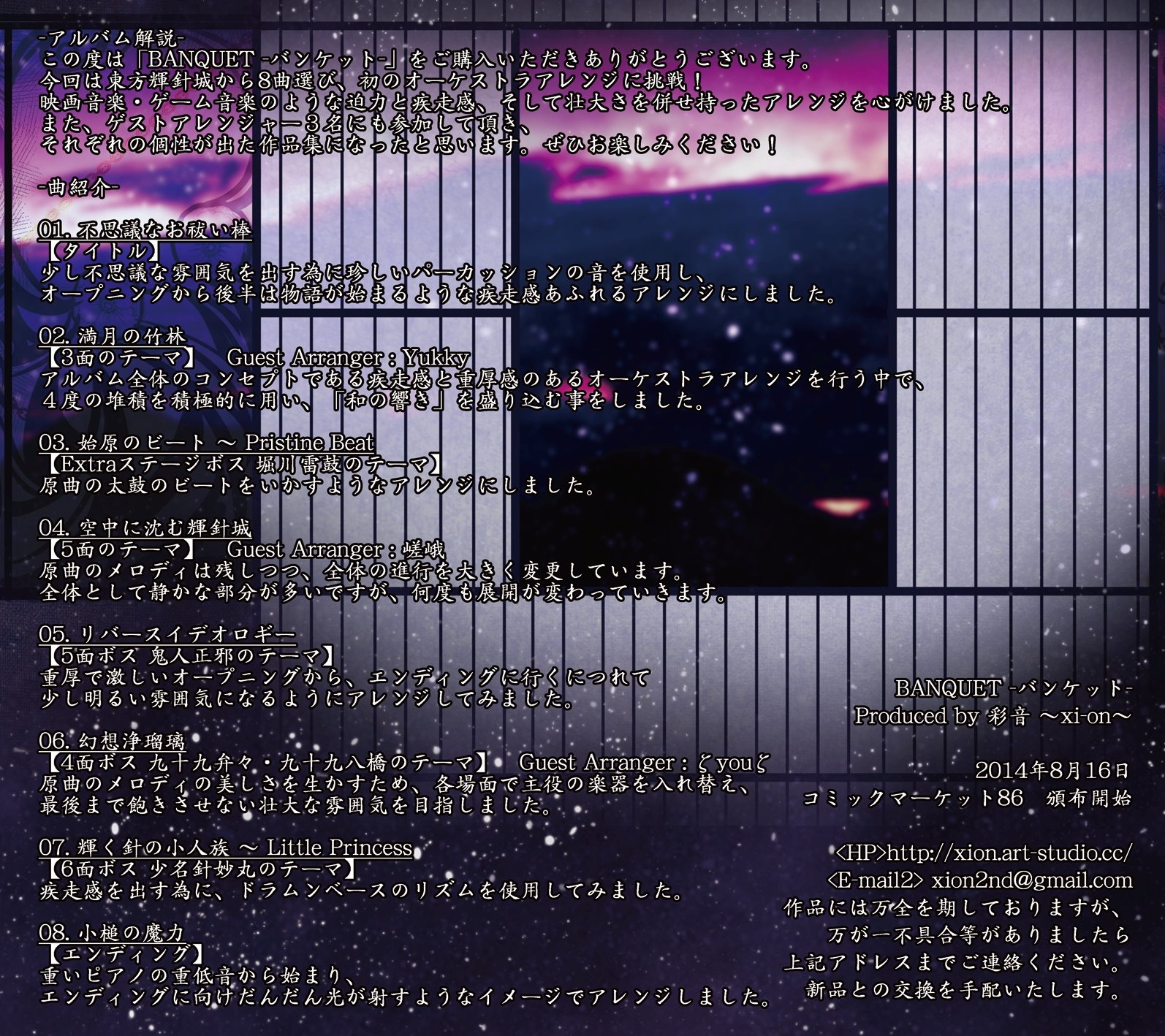 Guest Arrangers: Yukky (2), 嵯峨 (4), ζyouζ (6)