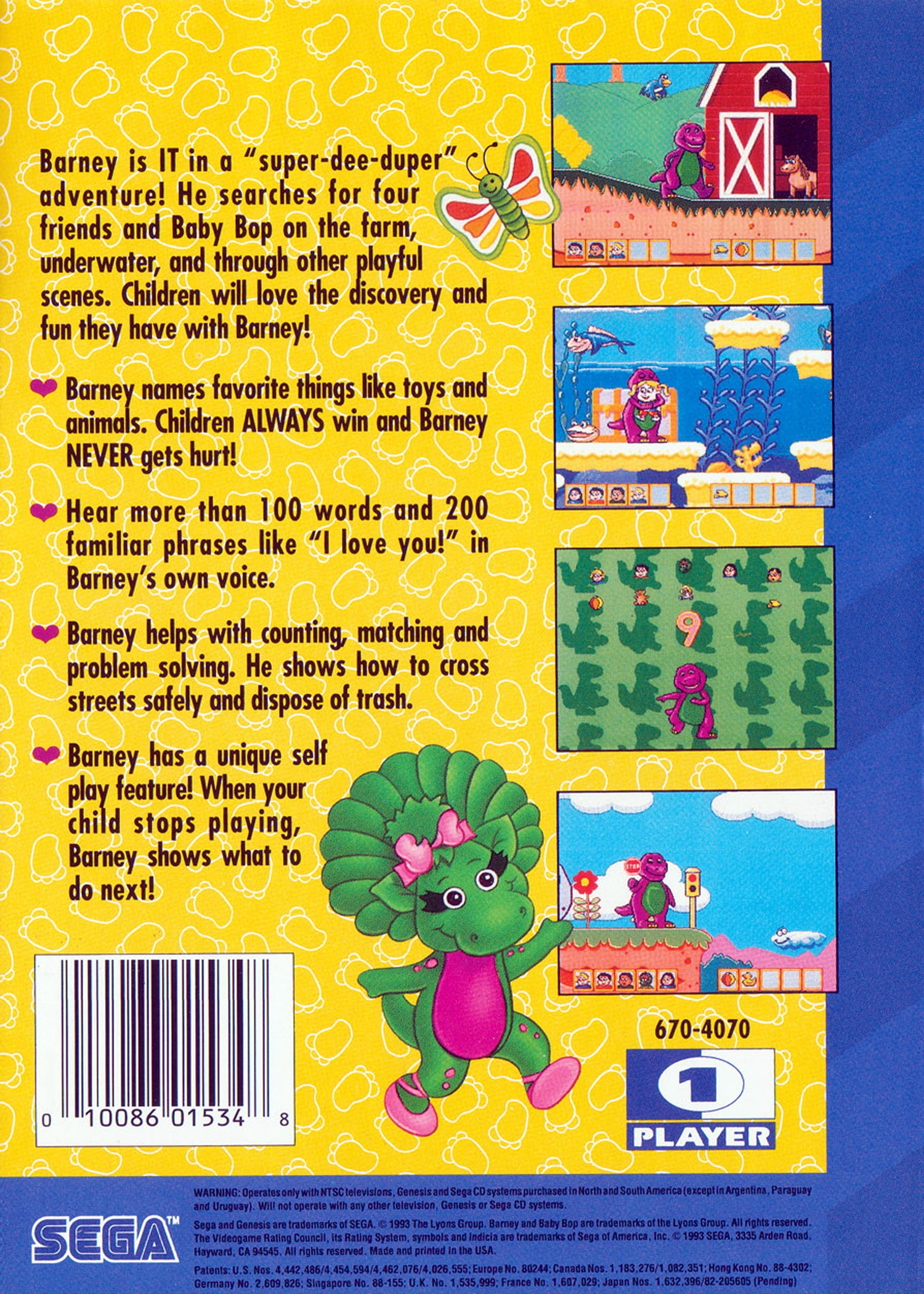 Rare gamerip of Barneys Hide & Seek Game on Genesis