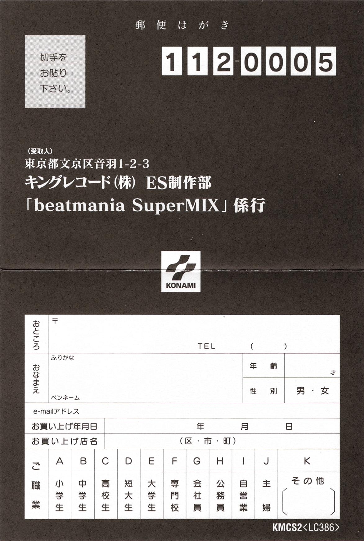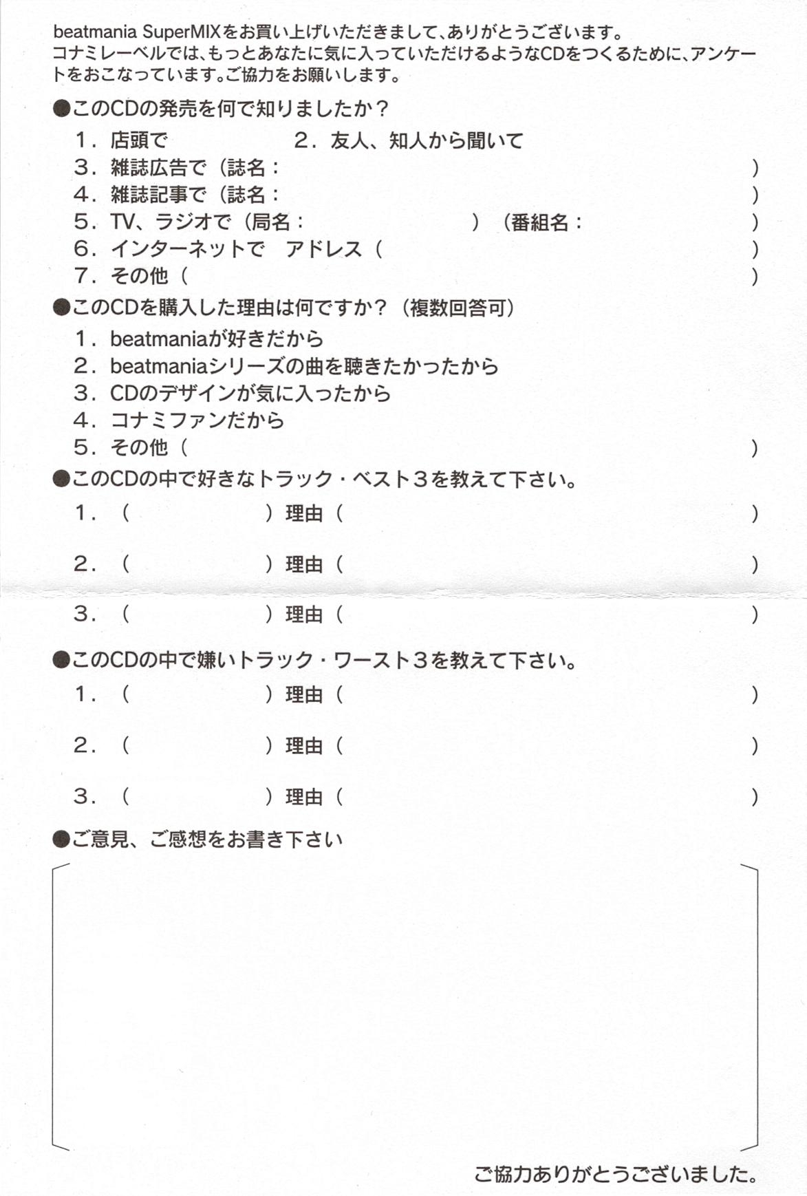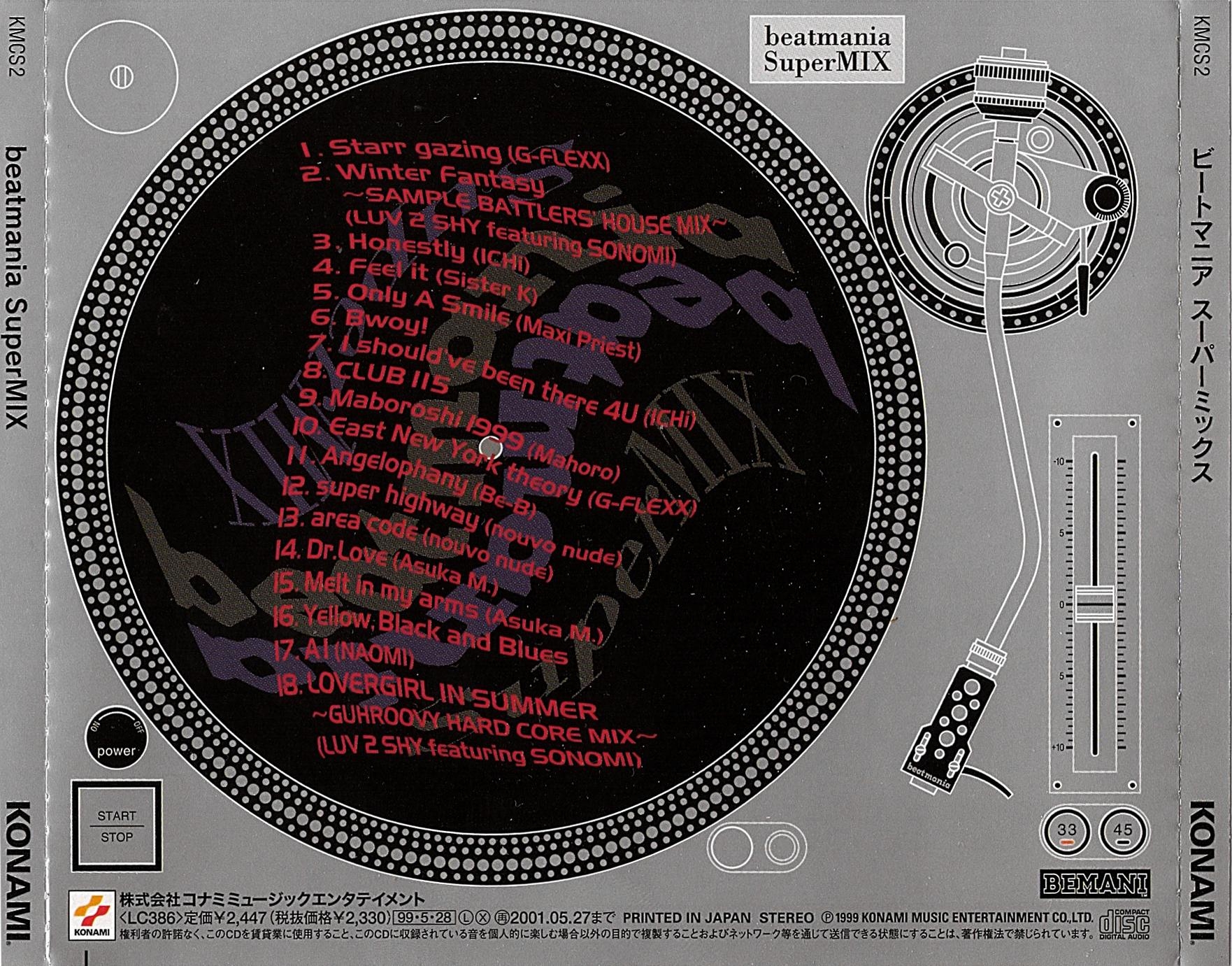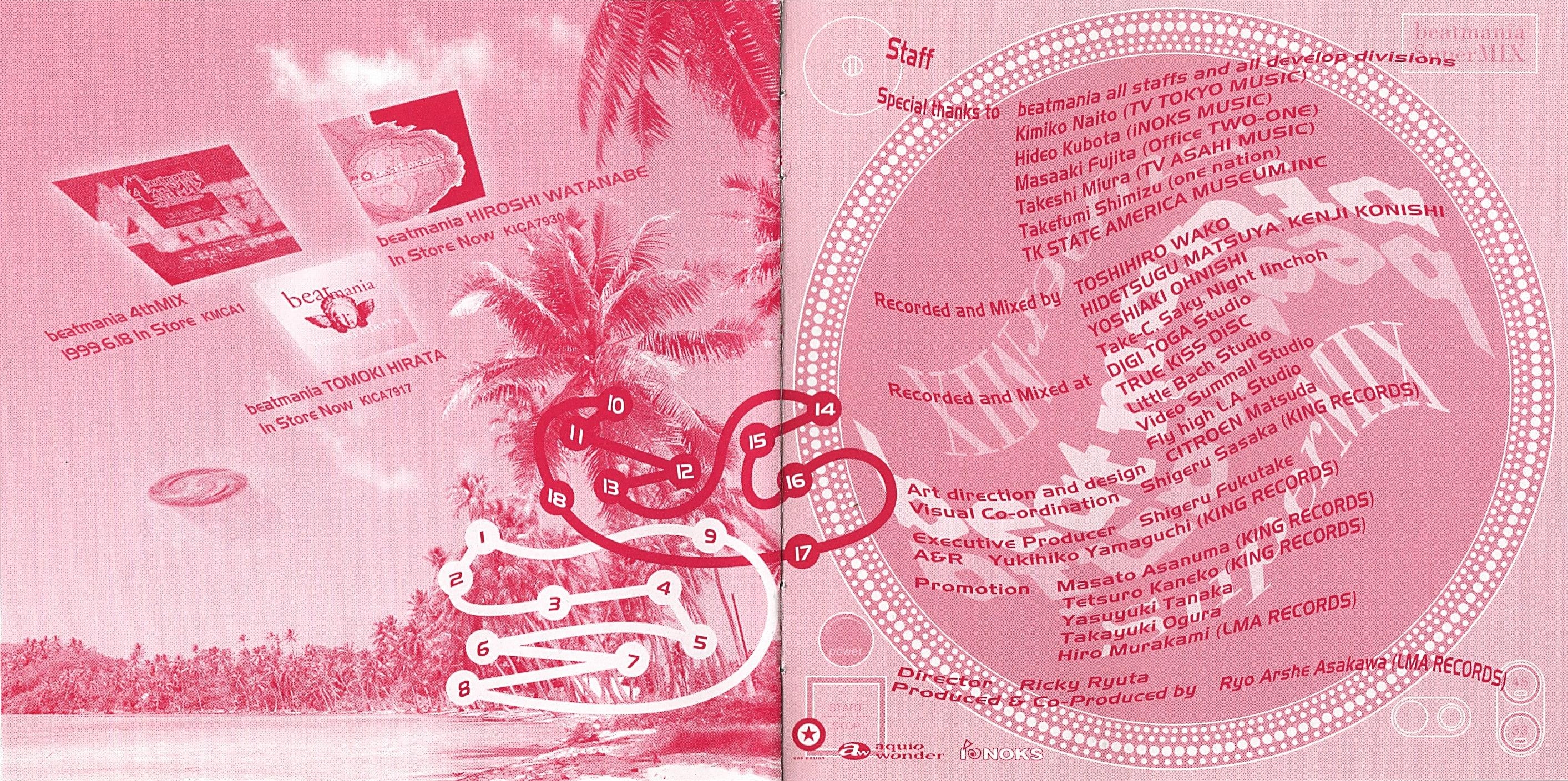 Special thanks to beatmania all staffs and all develop divisions, Kimiko Naito (TV TOKYO MUSIC), Hideo Kubota (iNOKS MUSIC) Masaaki Fujita (Office TWO-ONE), Takeshi Miura (TV ASAHI MUSIC), Takefumi Shimizu (one nation), TK STATE AMERICA MUSEUM,INC