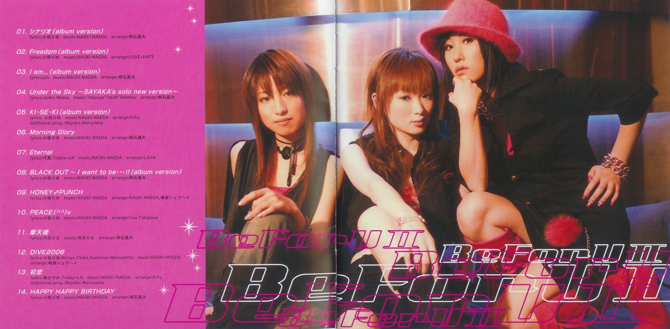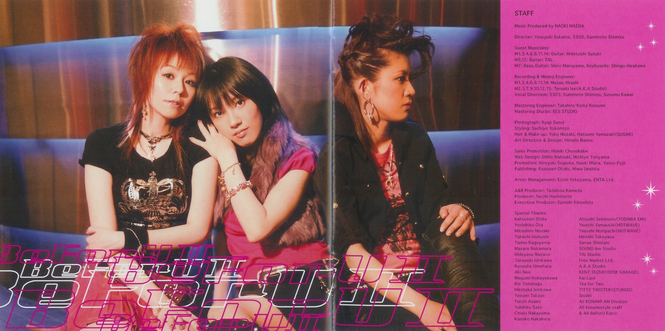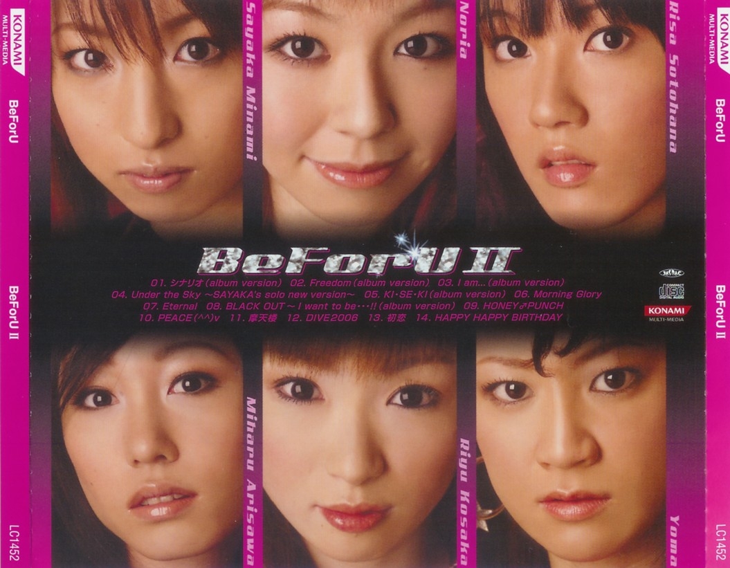 Special Thanks: Katsunori Okita, Yoshihiko Ota, Mitsuhiro Nozaki, Takashi Inubushi, Tadao Kageyama, Masaru Nakamura, Hideyasu Nakano, Takayuki Ishikawa, Ryosuke Umehara, Aki Neo, Megumi Kohayakawa, Rie Tominaga, Hirotaka Ishikawa, Yasumi Takase, Yuichi Asami, Yukihiro Sato, Chiaki Nakayama, Kanako Nakahara, Atsushi Sekimoto (TOSHIBA EMI), Youichi Yamauchi (HOTWAVE), Yasushi Horiguchi (HOTWAVE), Hiroshi Takeyasu, Sanae Shintani, SOUND Inn Studio, TAI Studio, Free Market Ltd., A.K.A Studio, KENT SUZUKI (DISK GARAGE), Kai Lani, Tea for Two, TITTY TWISTER (STURGIS), Snidel, All KONAMI AM Division, All konamistyle staff & All BeForU Fan☆