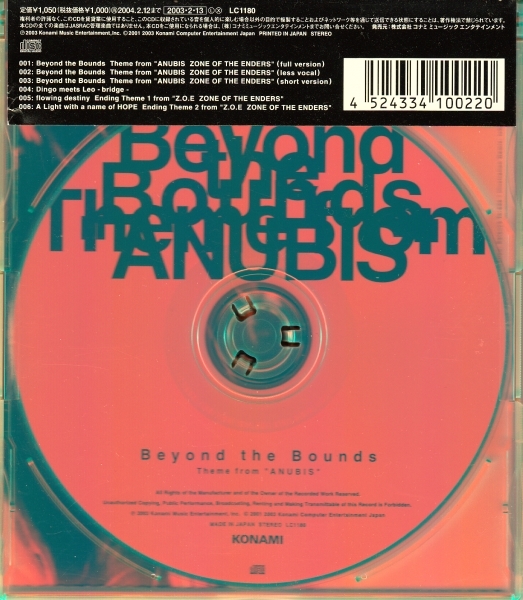 3. | Beyond the Bounds Theme from ''ANUBIS Zone of the Enders'' (short version) | 2:03 | 4.07 MB | 14.39 MB | get_app | playlist_add |