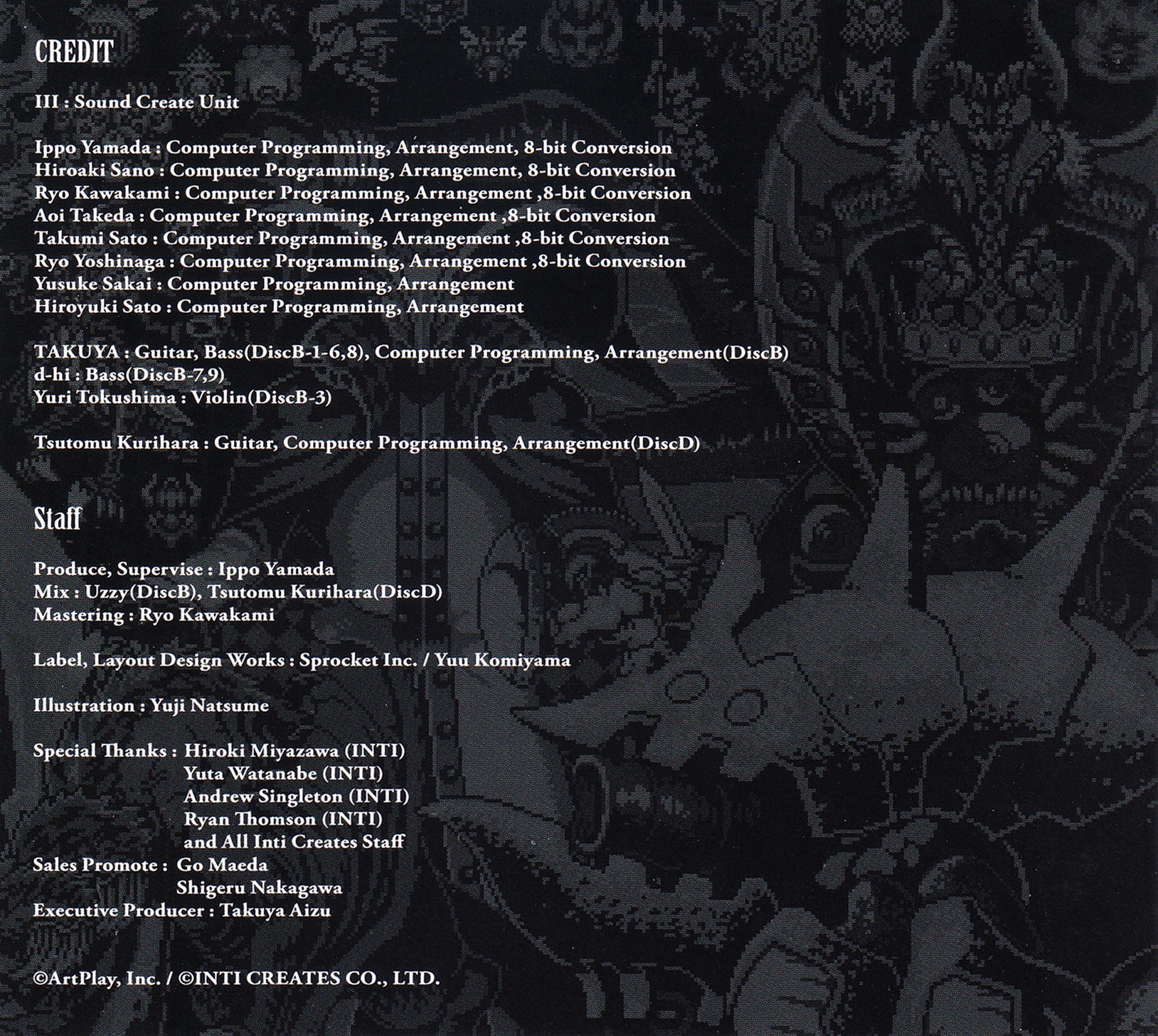 TAKUYA: Guitar, Bass (DiscB-1-6,8), Computer Programming, Arrangement (DiscB)