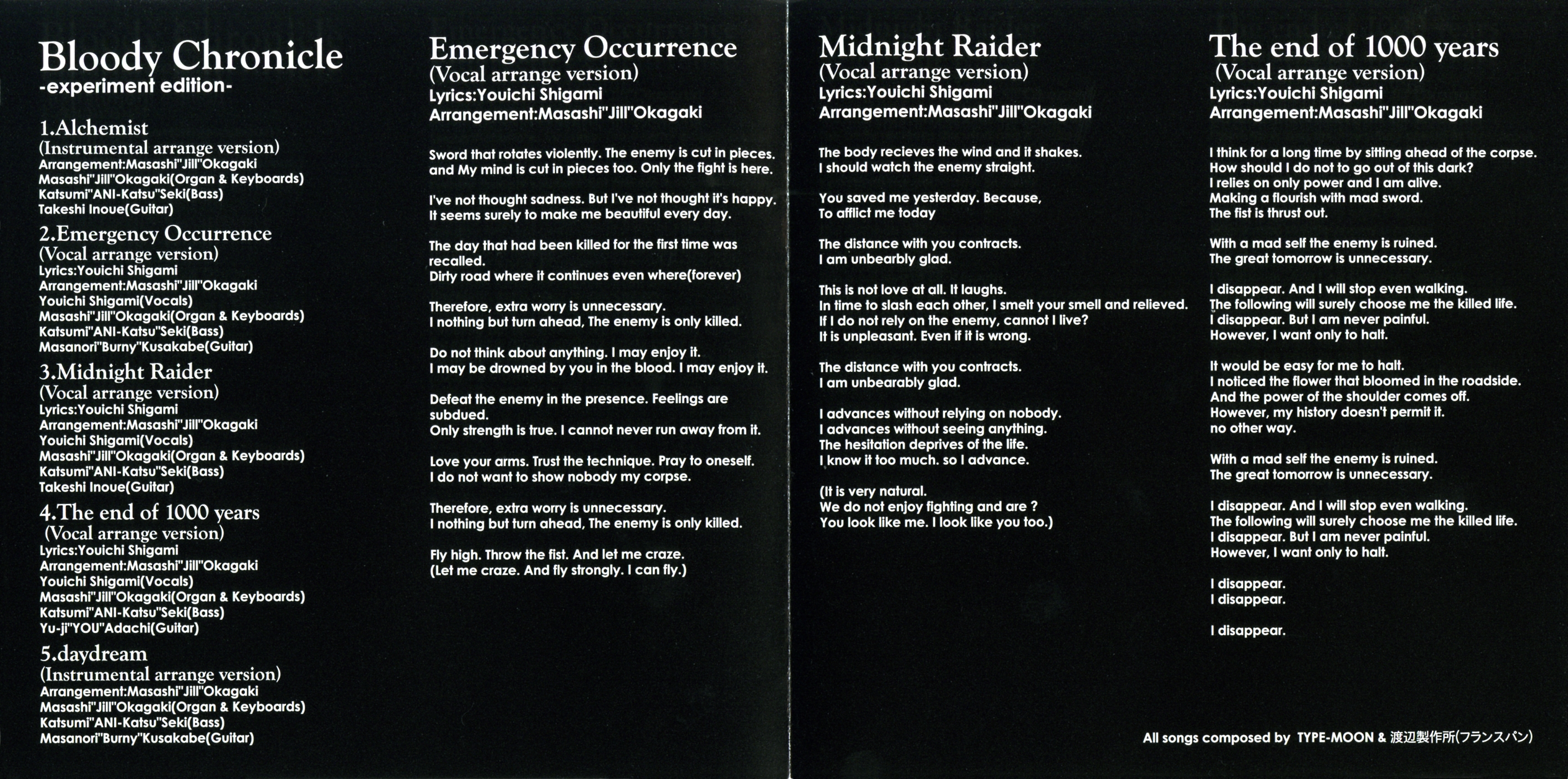 All songs composed by : TYPE-MOON & FRENCH-BREAD
