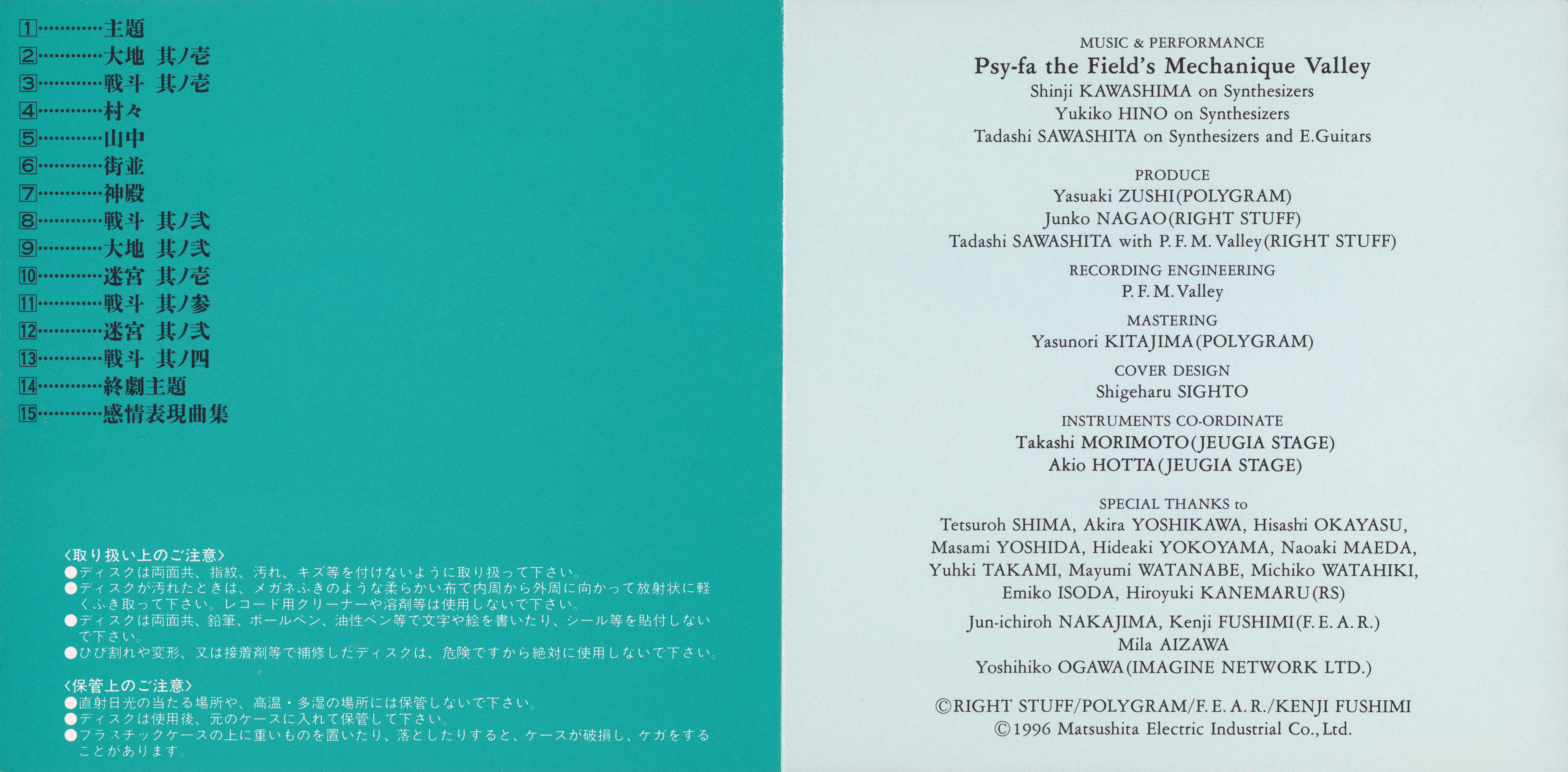 SPECIAL THANKS to Tetsuroh SHIMA, Akira YOSHIKAWA, Hisashi OKAYASU, Masami YOSHIDA, Hideaki YOKOYAMA, Naoaki MAEDA, Yuhki TAKAMI, Mayumi WATANABE, Michiko WATAHIKI, Emiko ISODA, Hiroyuki KANEMARU (RS)