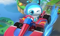 Bomb It Kart Racer is a 3D kart racing game with cute robot characters and vividly colorful graphics. The game is noticeably similar to Mario Kart on the Nintendo Wii. The game features a wide variety of cars, characters, levels, and power-ups. The game also features different game modes / race goals that vary randomly. Collect coins and use them to buy new cars, car parts, and other stuff.