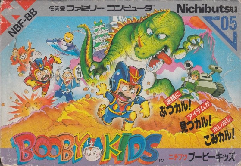 Booby Kids is a game played from an overhead perspective, with the player taking on the role of one of the titular Booby Kids, named for their ability to instantly dig booby traps in front of where they stand and bury hostile enemies that attempt to seek out and ultimately destroy the Booby Kids. Compared to Kid no Hore Hore Daisakusen, the levels in Booby Kids feature more of a reliance on puzzle-solving in addition to the maze like structures of the original game.