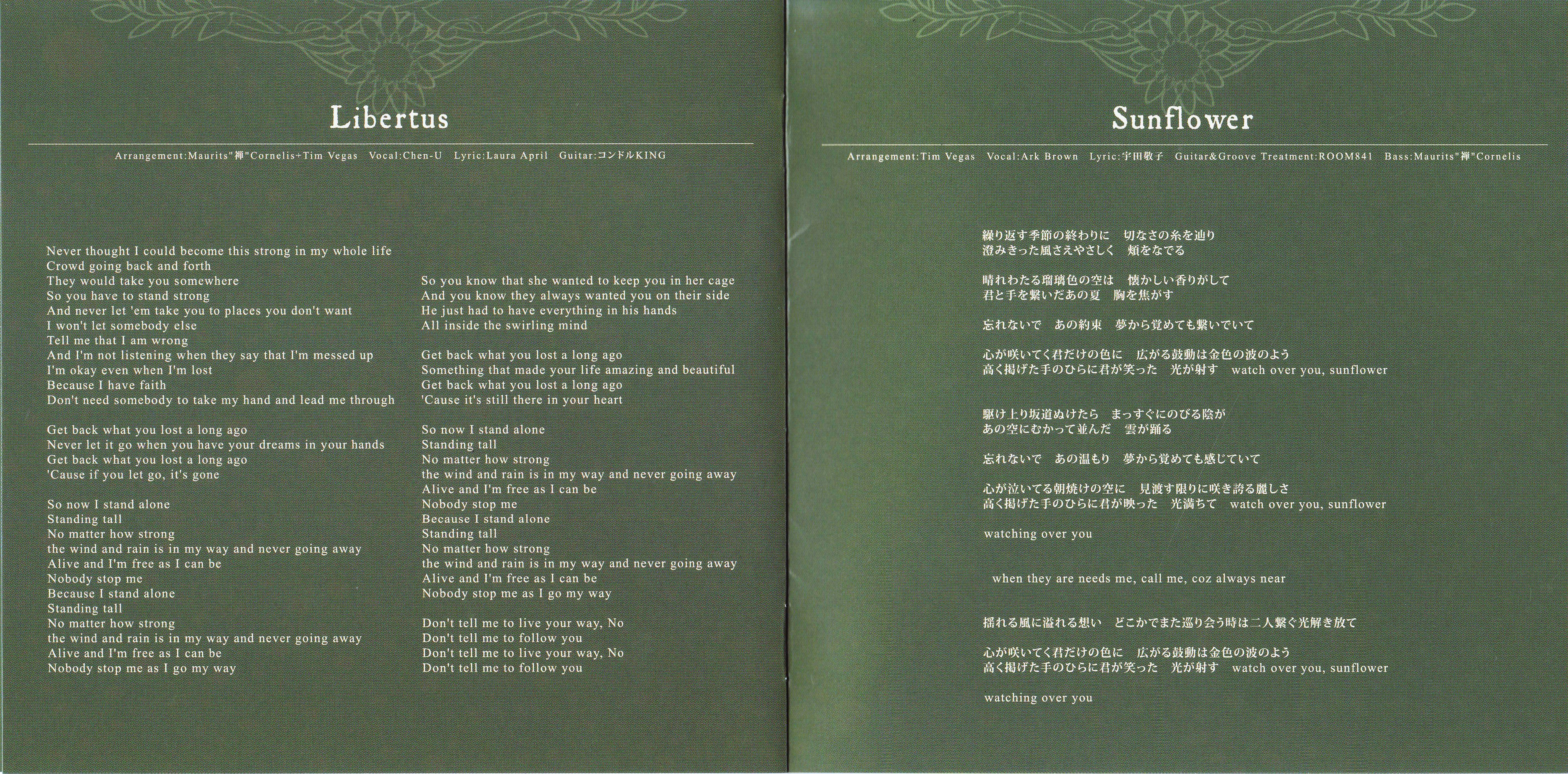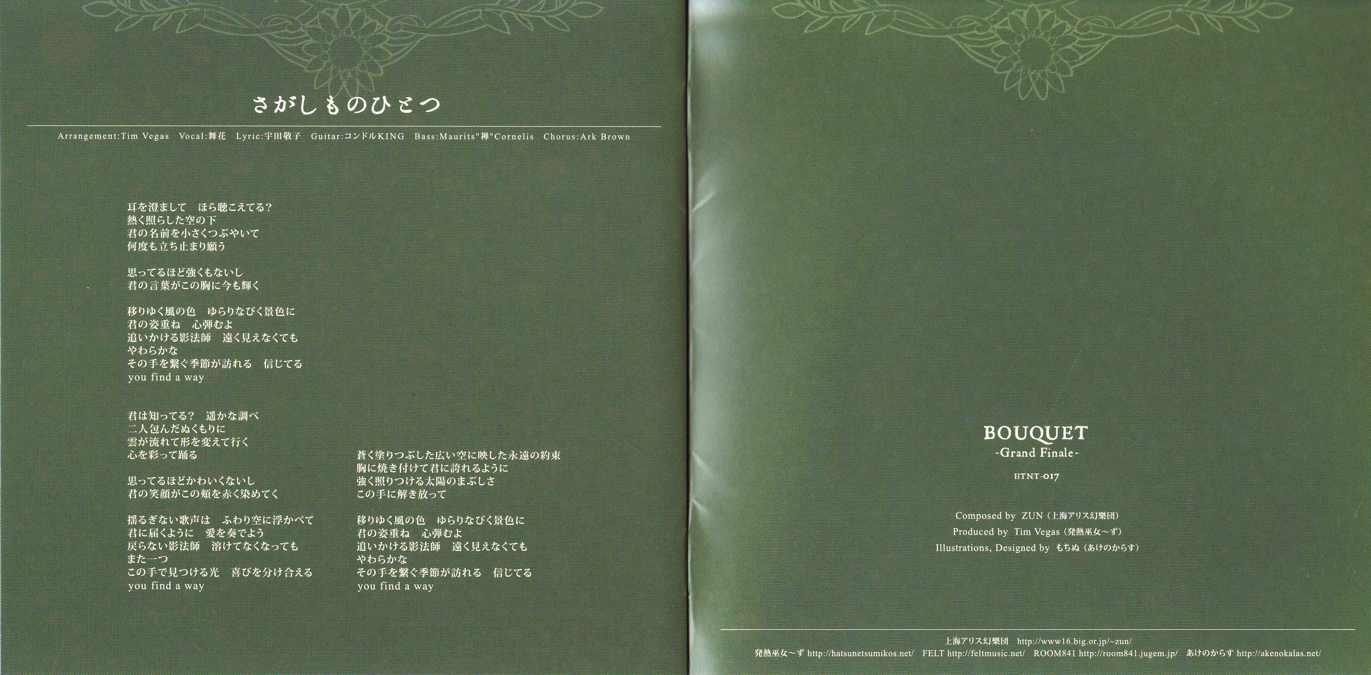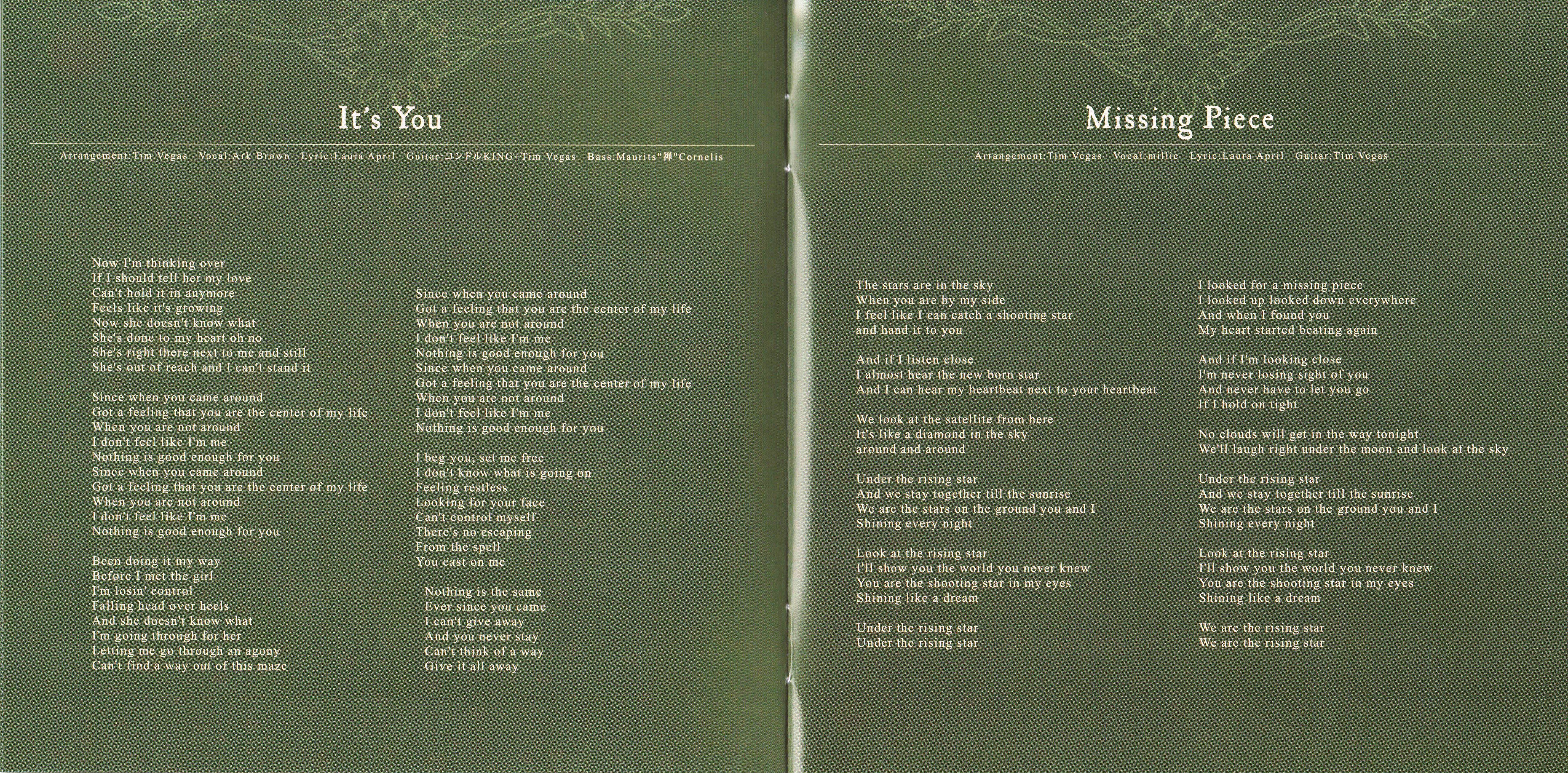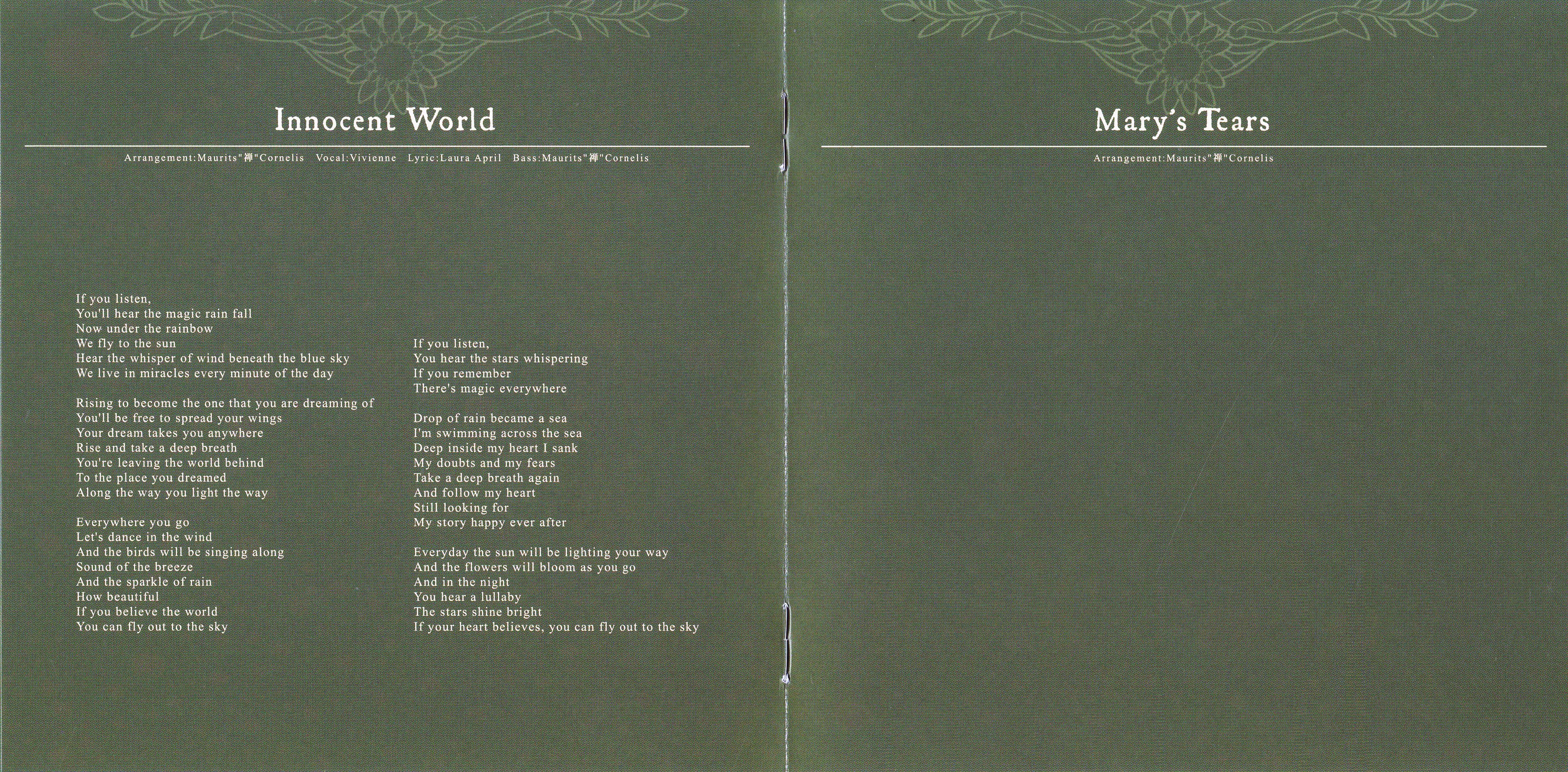 Lyrics: 宇田敬子 (2,8,9), Laura April (3,4,5,7)
