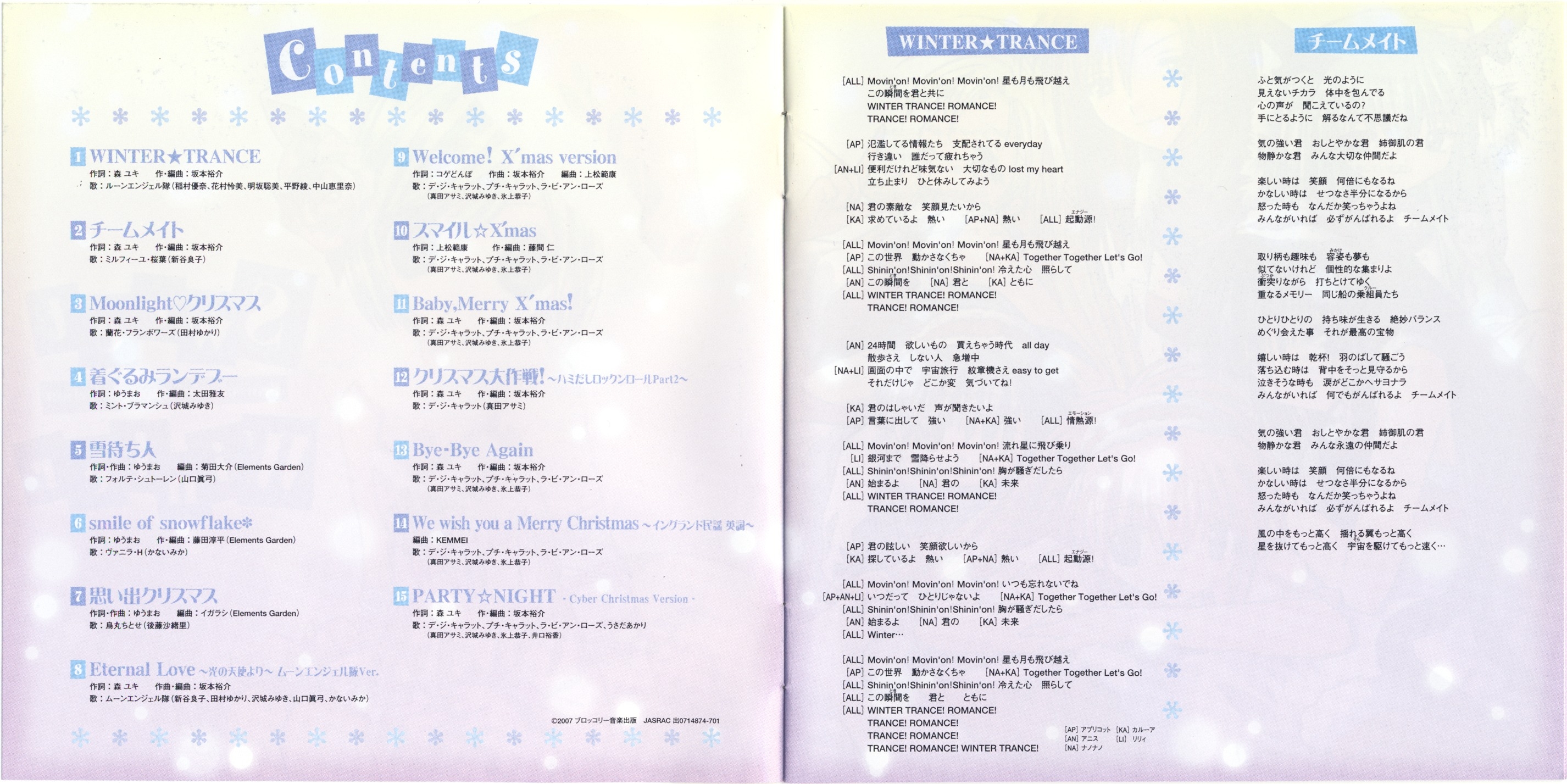 Special Thanx: U-Prime Studio, ARIA entertainment, ブロッコリーハミだし隊