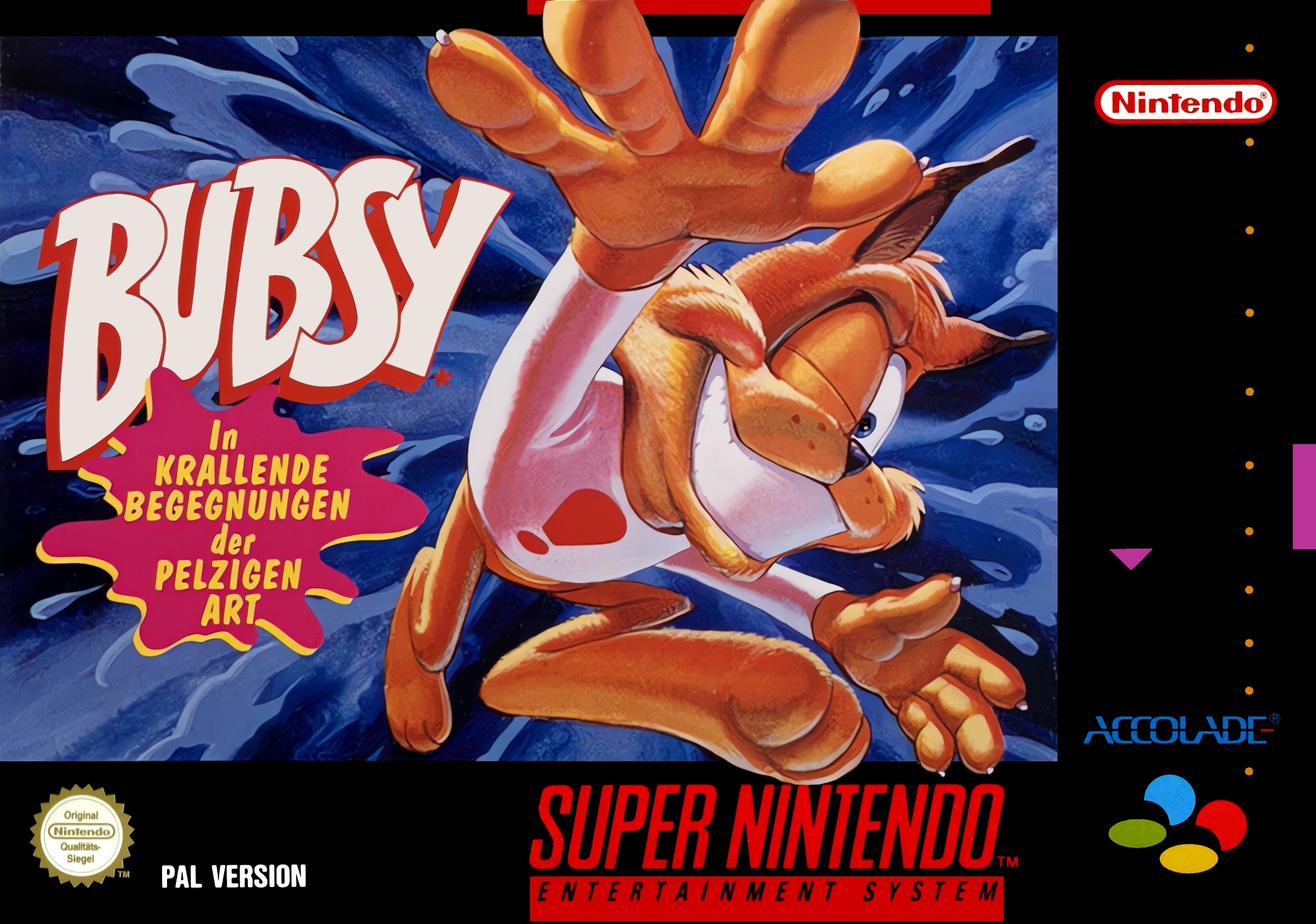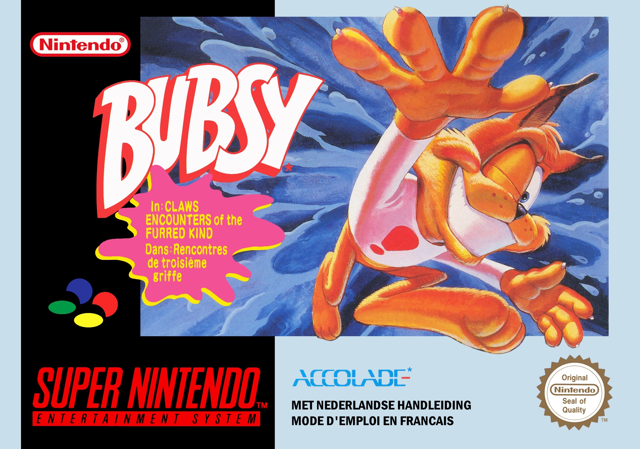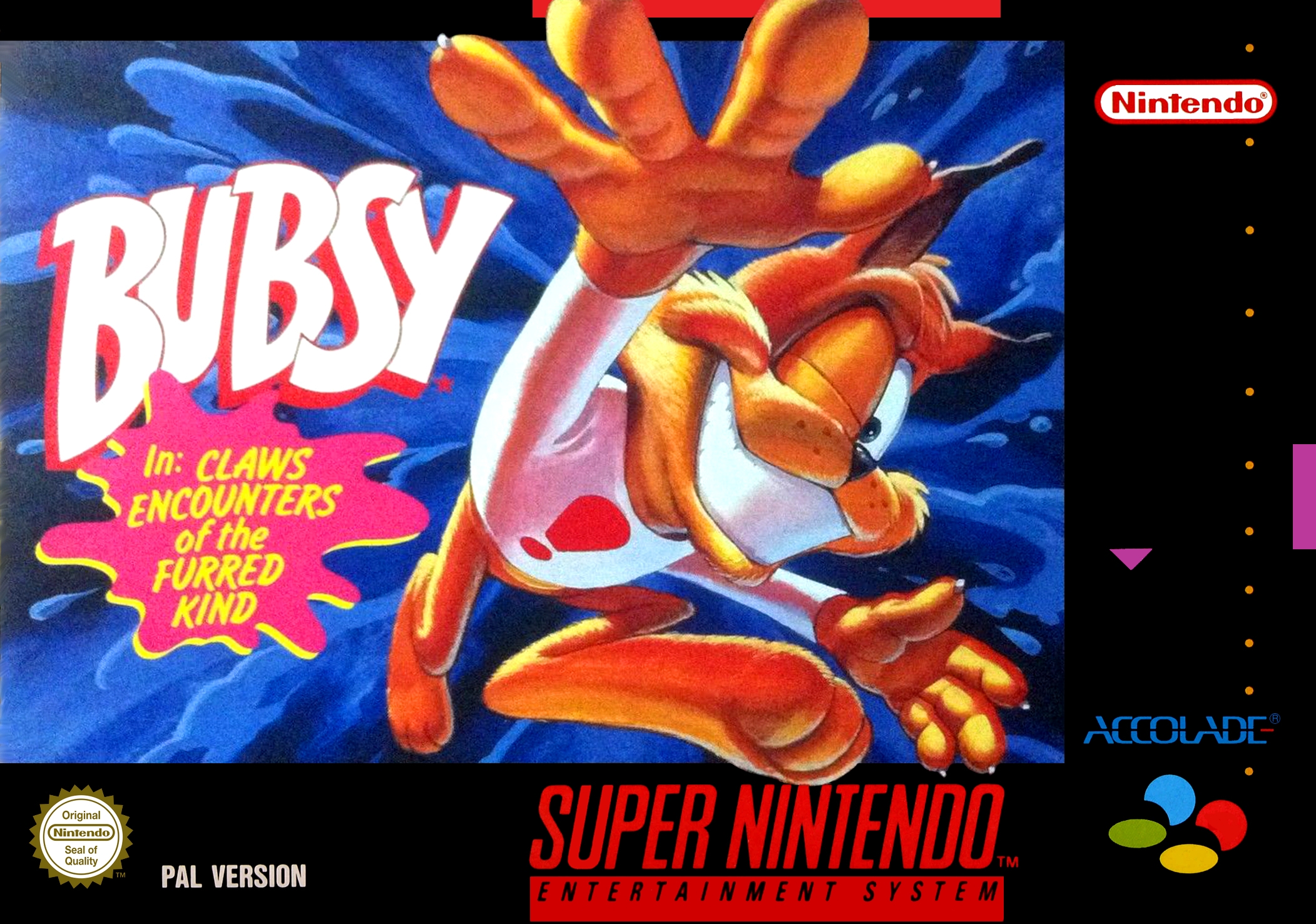 Original Desc: "Snes (for now...)' New Desc: Bubsy in Claws Encounters of the Furred Kind is a 1993 platformer realeased on SNES and Genesis/MD, a 1997 PC port was also made called Super Bubsy.