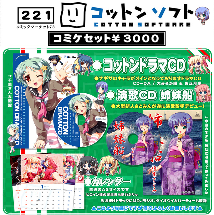 Enclosed with COTTON SOFTWARE Comic Market 73 Set. Comes with COTTONC73CD-01.