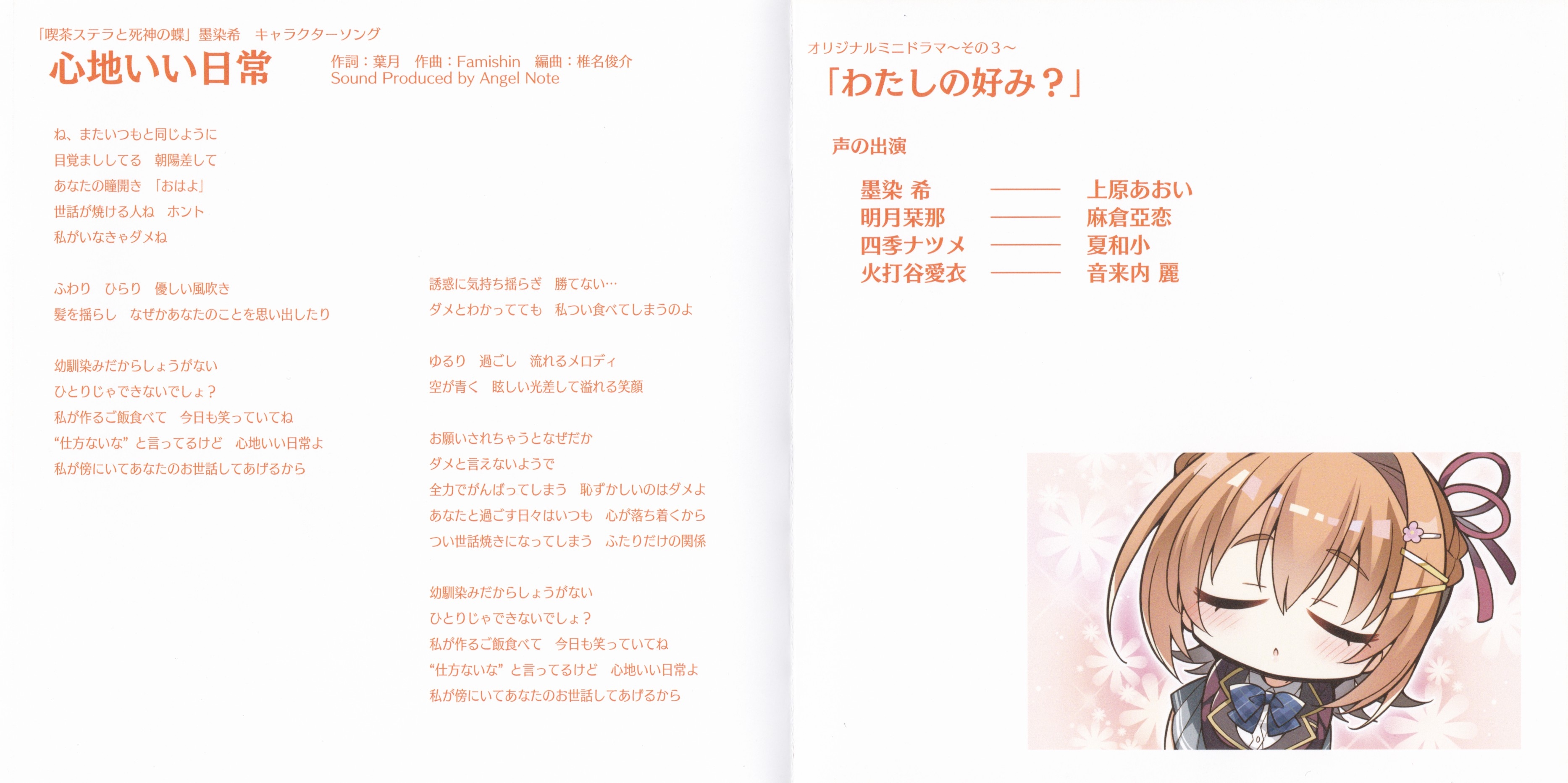 Café Stella to Shinigami no Chou Character Song Vol.3 Kokochiii Nichijou / Nozomi Sumizome (CV: Aoi Uehara)
