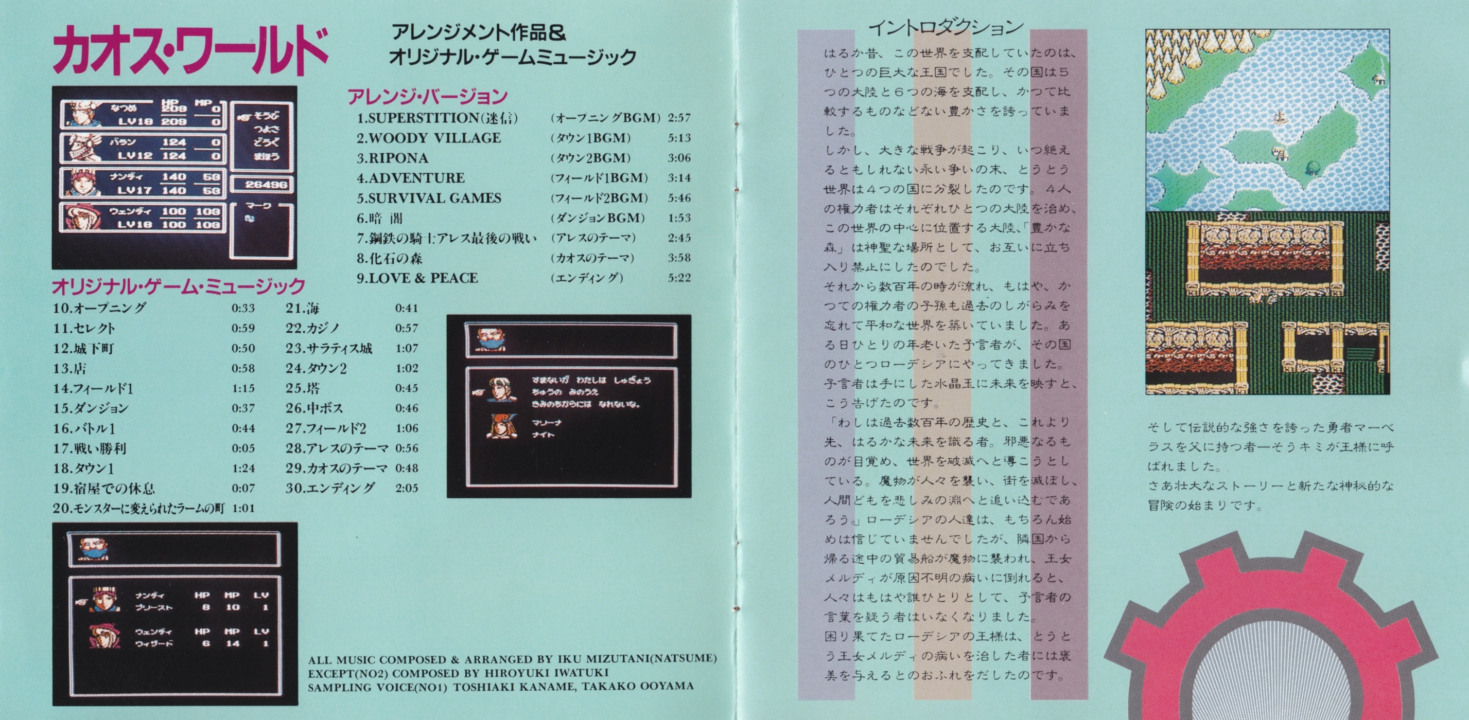 * Iwatuki is only credited in the booklet for track 2. Track 18 is the original BGM of which track 2 is an arrangement, and Iwatuki has stated in an interview that he also composed track 11.