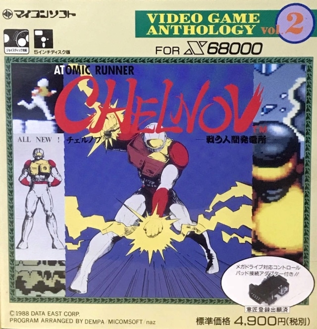 The game released for the X68000 in 1993. This version is almost identical to the original arcade version. The release contained an adapter for the Mega Drive controller, commonly known in Japan as the Chelnov Adapter (チェルノブアダプタ), and allowed the player to use the Mega Drive controller for many other X68000 games besides Chelnov.