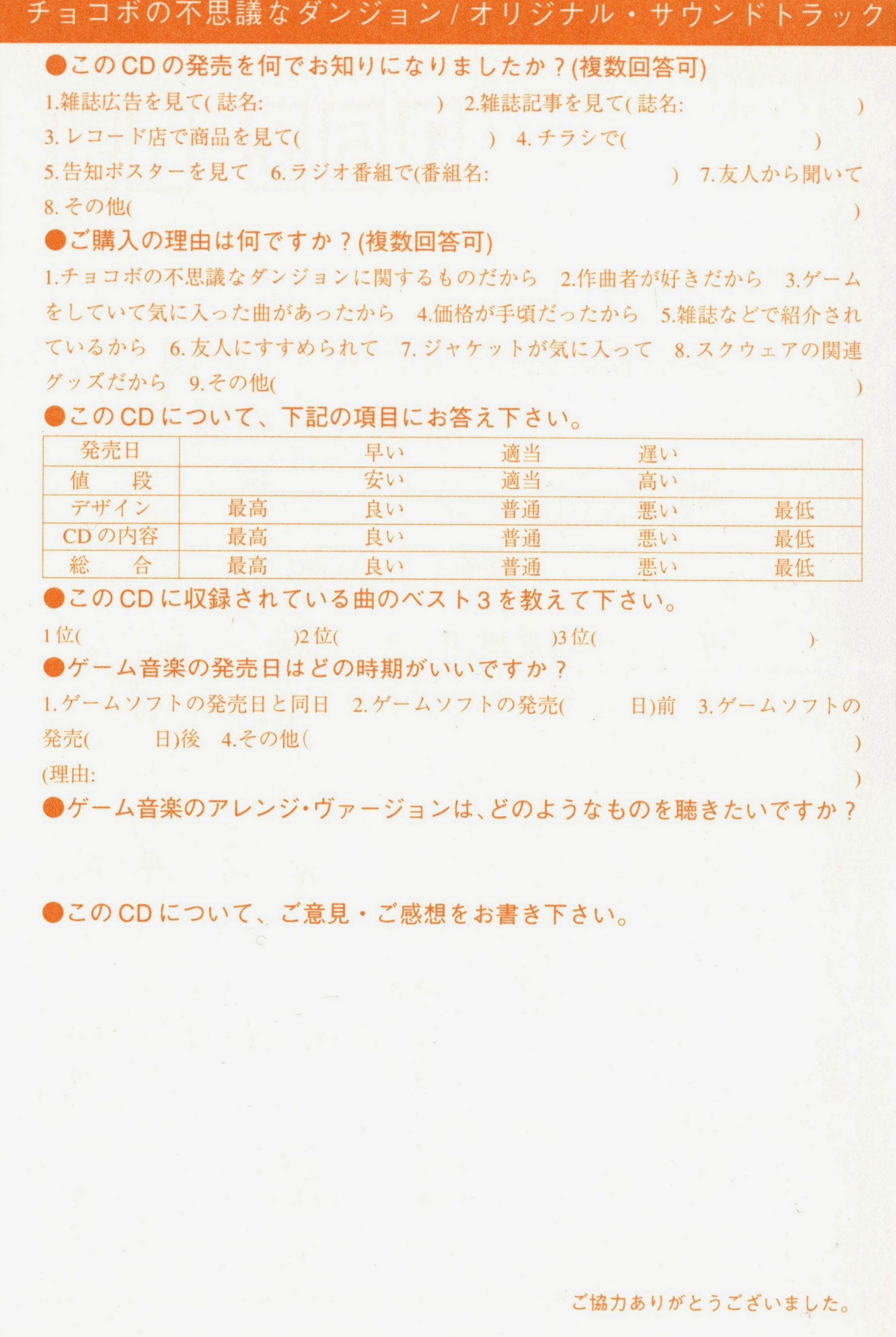 Directed by SQUARE Sound Team & Kishio Ozawa (DigiCube)