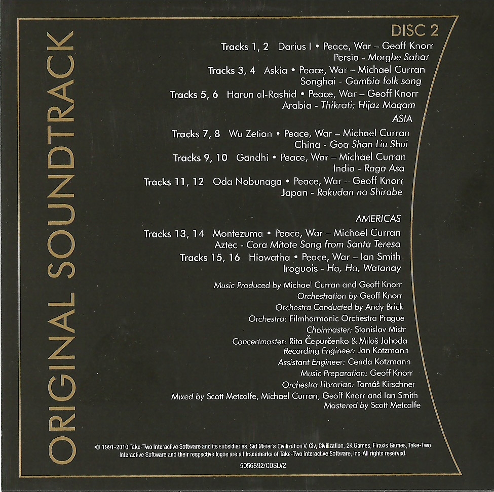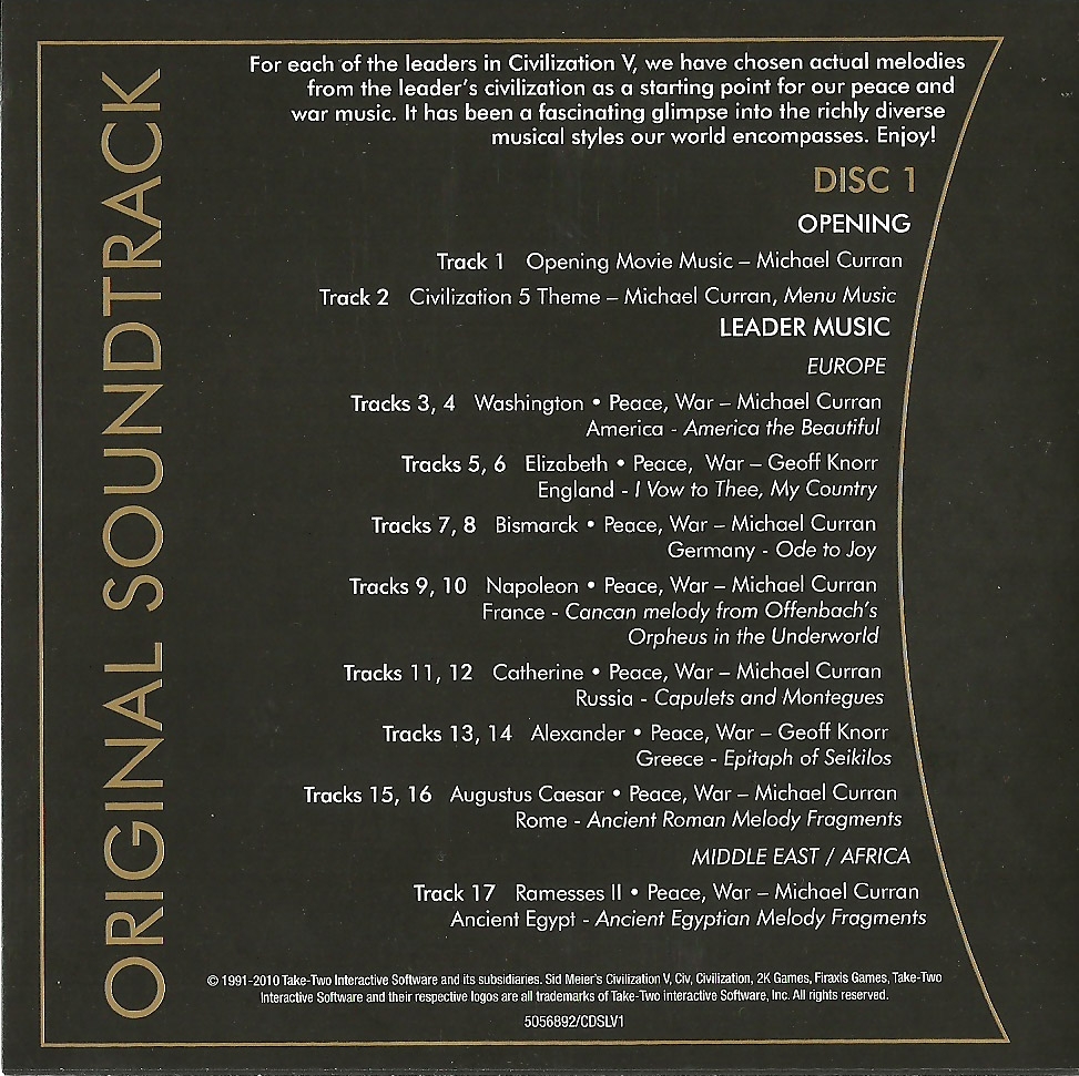 Two disc soundtrack included with the Special Edition of Civilization V.