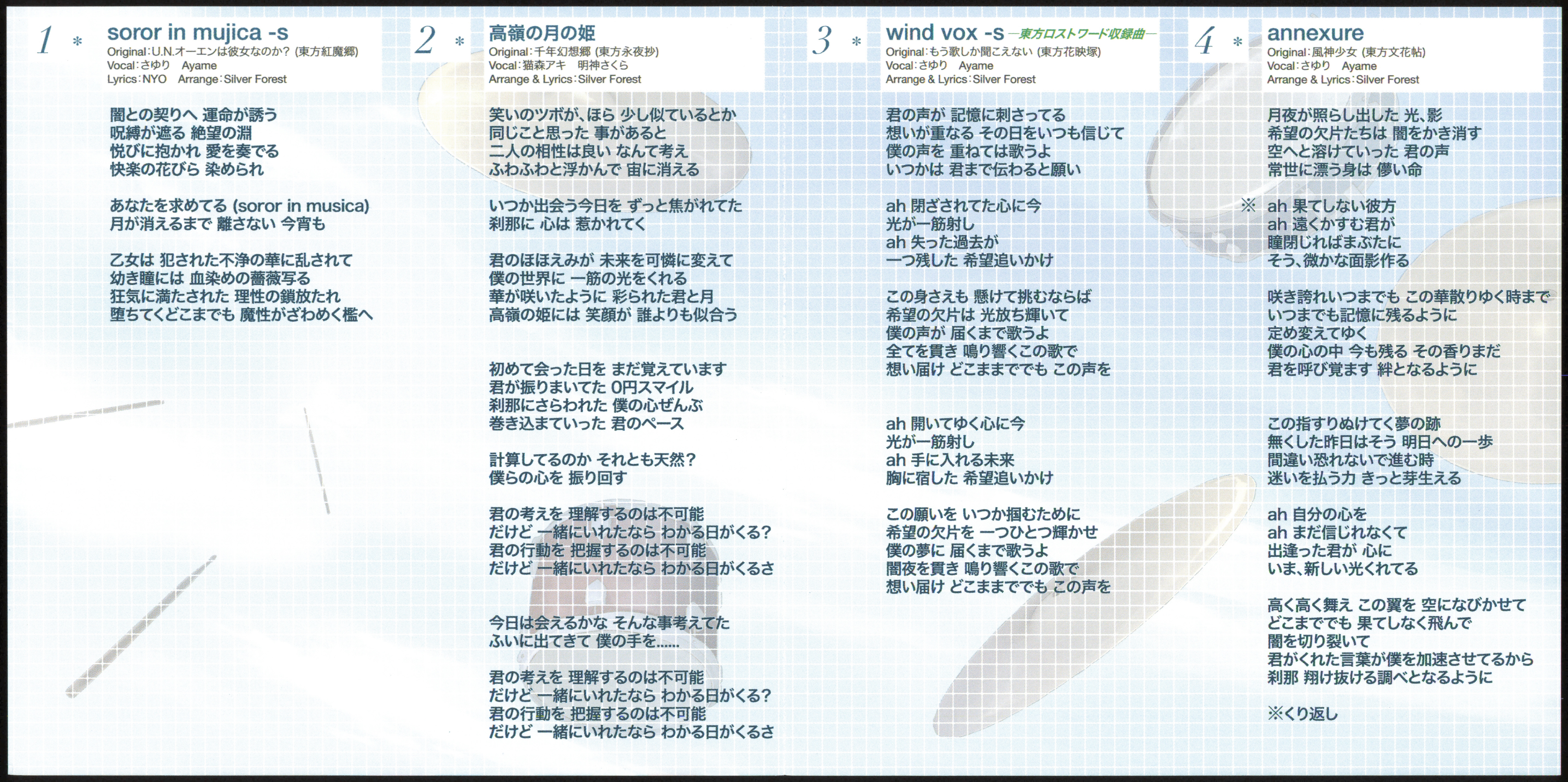 Lyrics: NYO (Tr.1,6), Silver Forest (Tr.2-5)