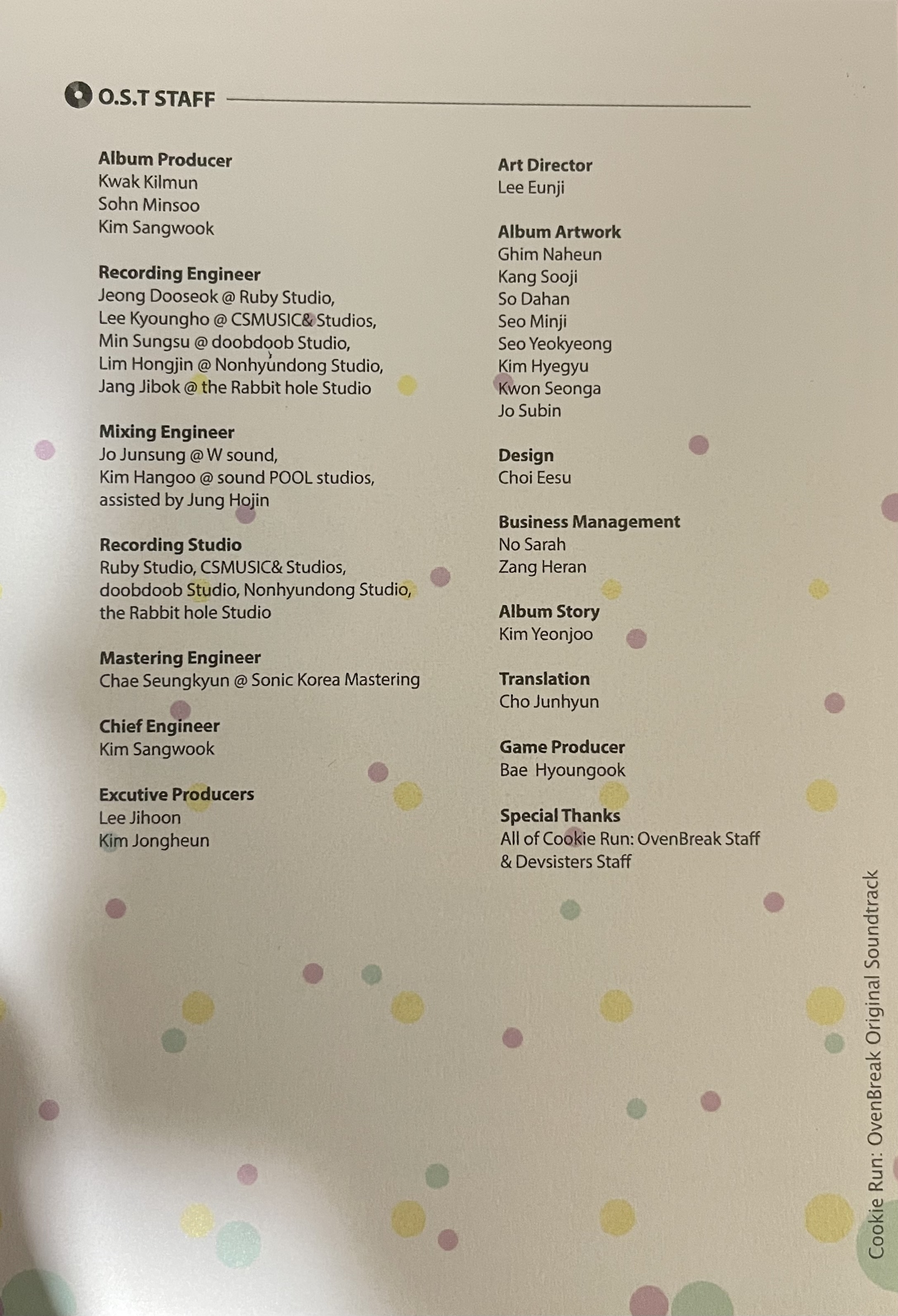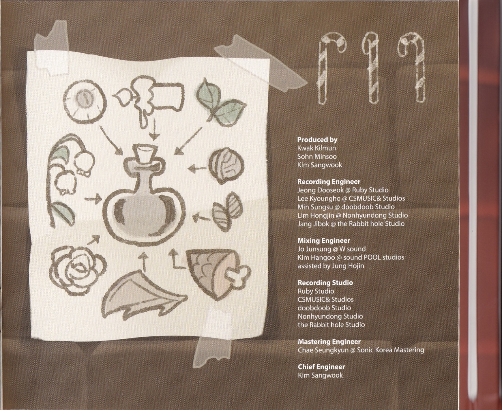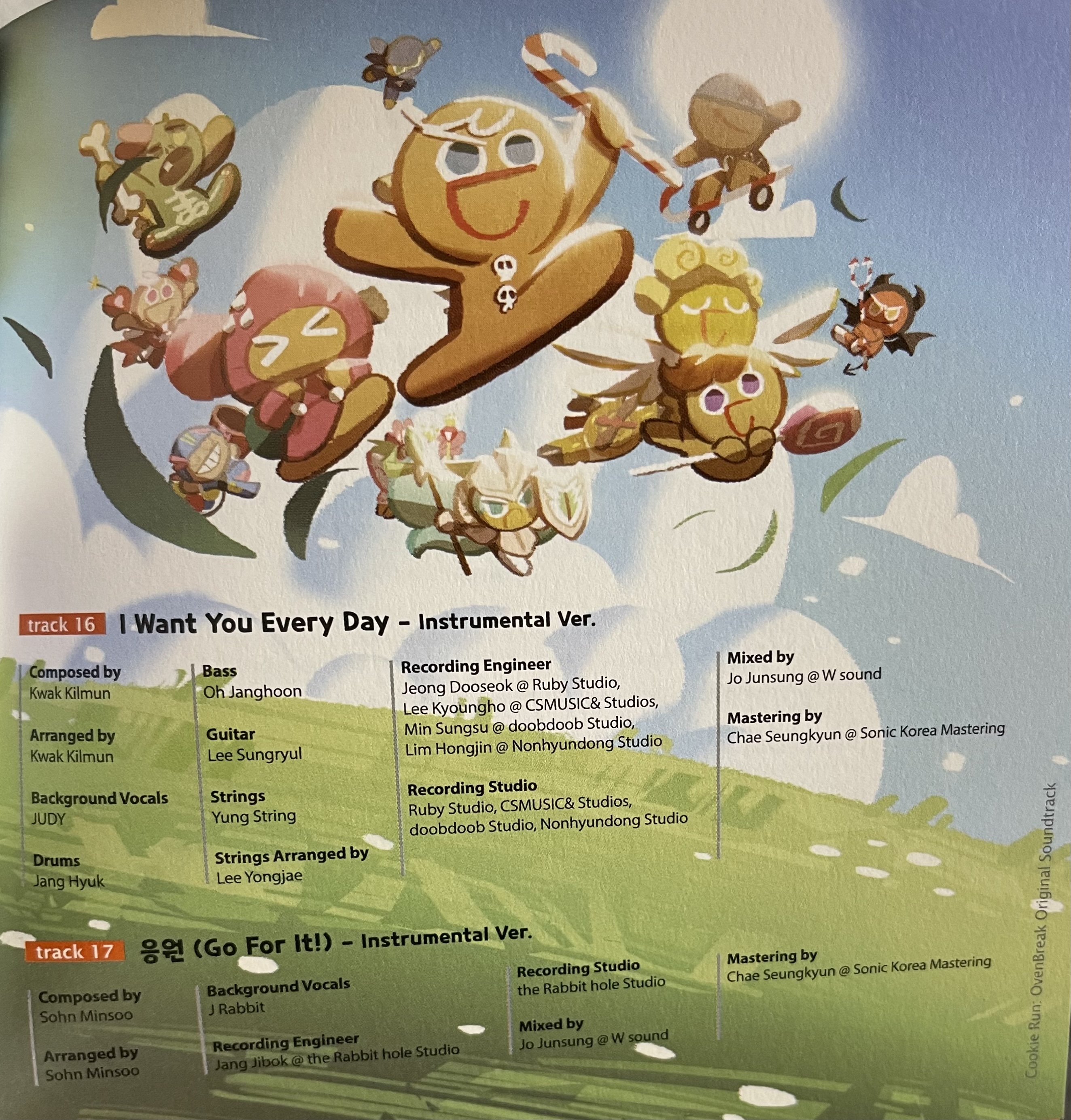 Recording Engineer: Dooseok Jeong @ Ruby Studio, Kyoungho Lee @ CSMUSIC& Studios, Sungsu Min @ doobdoob Studio, Hongjin Lim @ Nonhyundong Studio