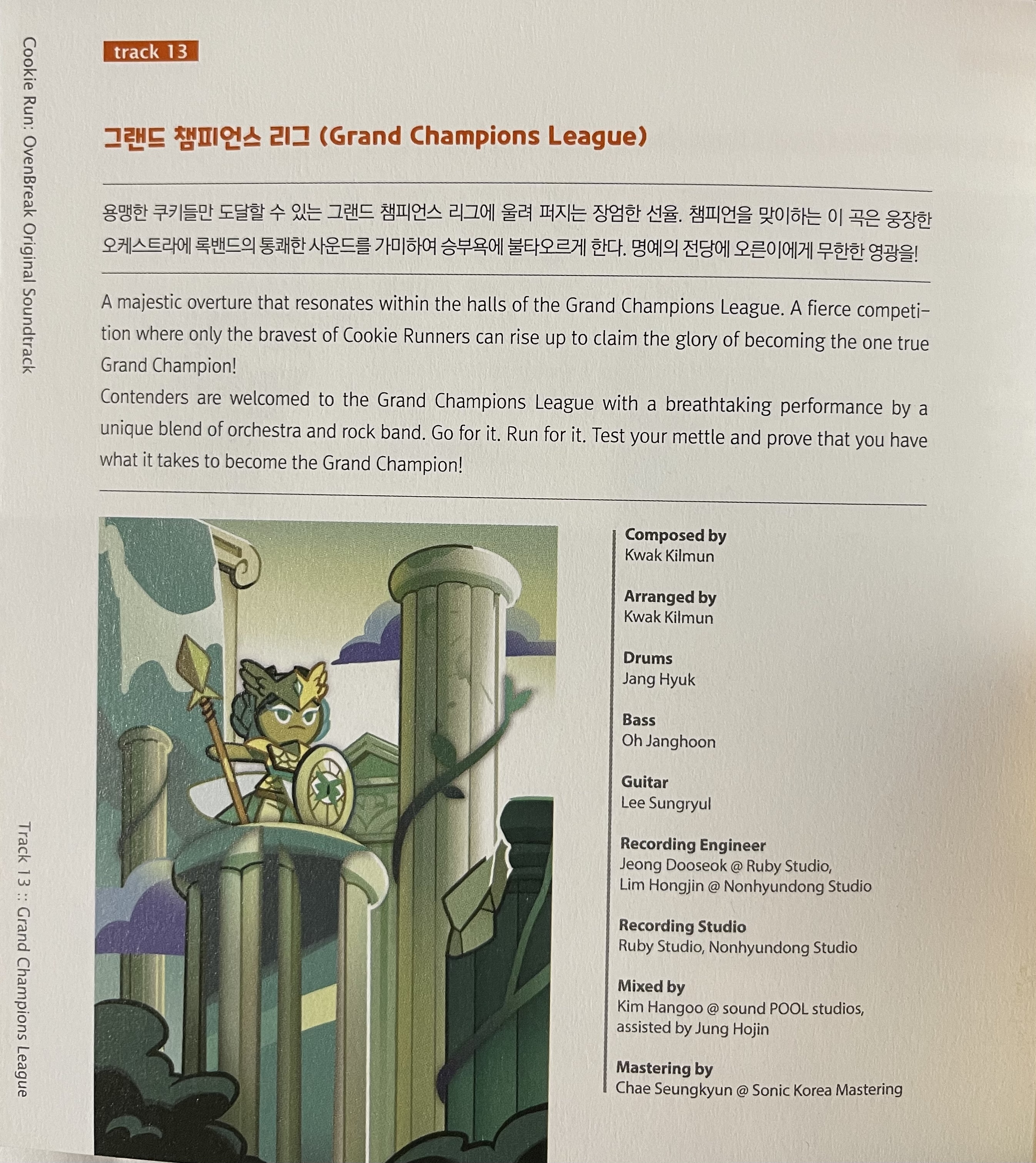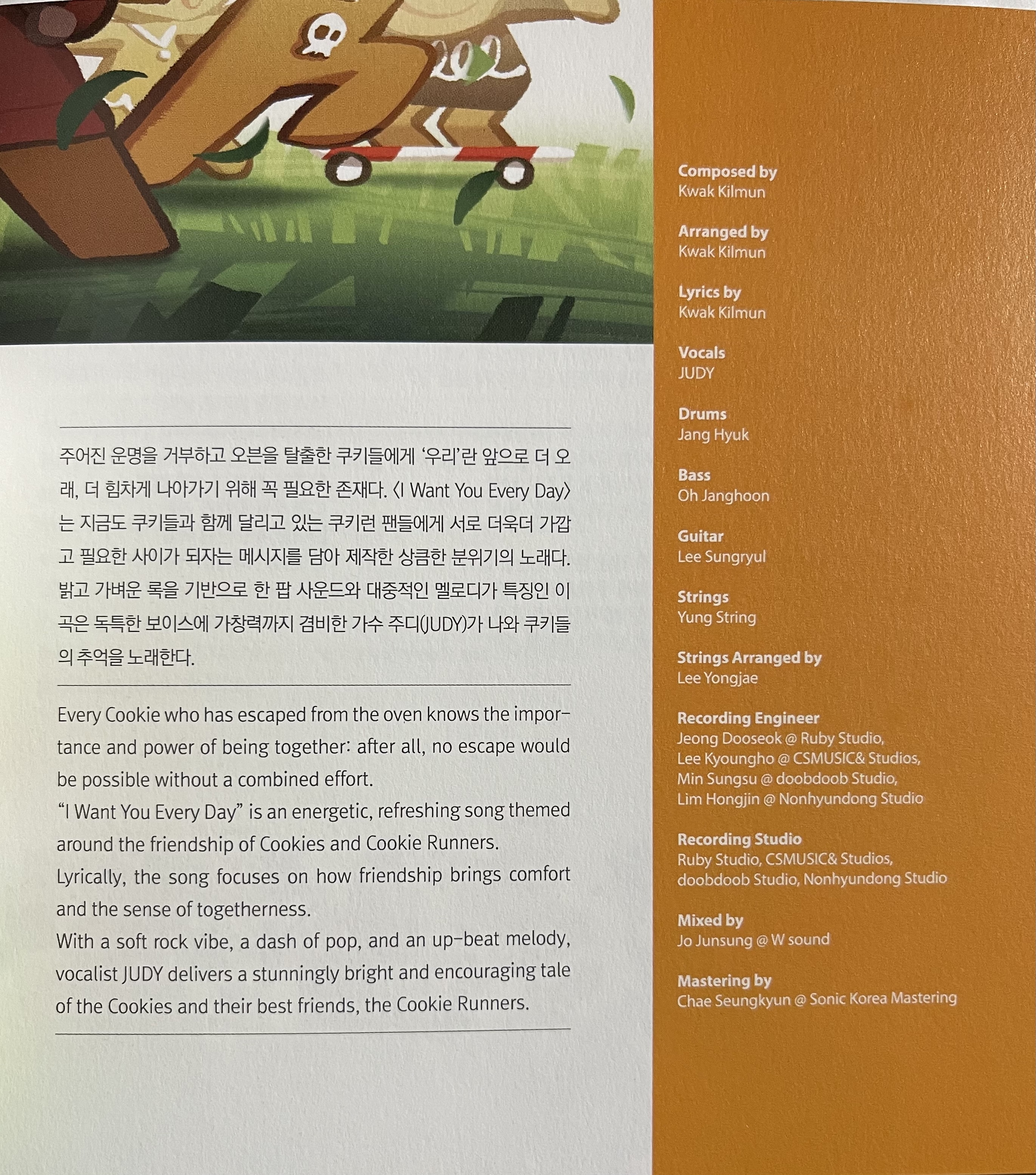 Recording Engineer: Dooseok Jeong @ Ruby Studio, Hongjin Lim @ Nonhyundong Studio