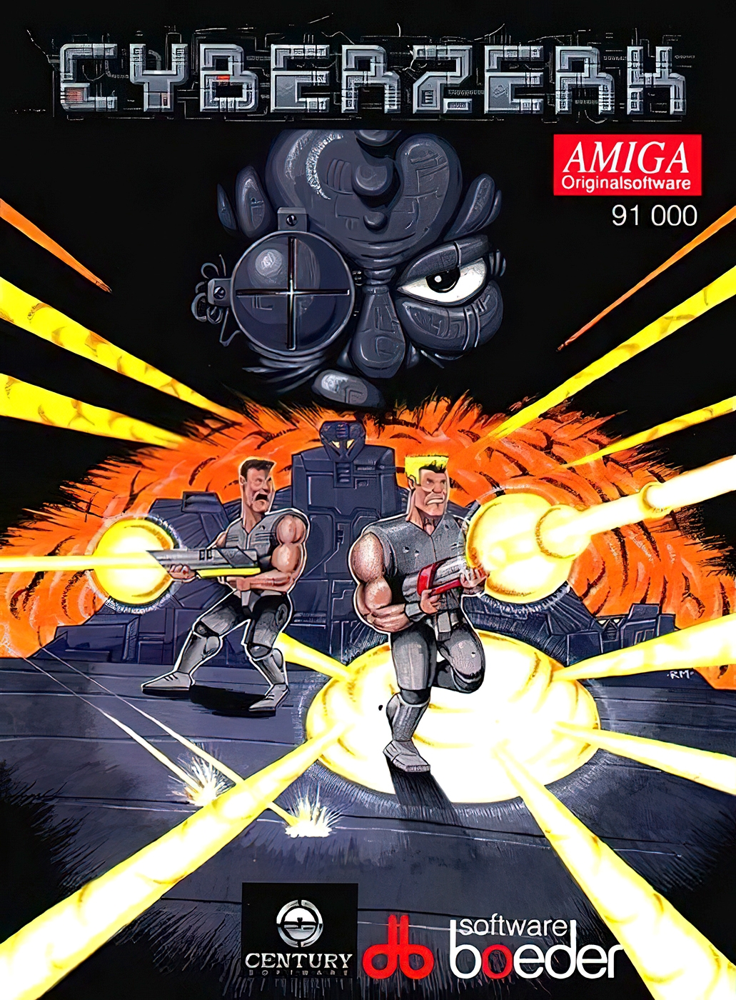 Cyberzerk is a top-down shooter in which the player has to cleanse a big space ship of all inhabitants. This is accomplished by using either the standard gun or a limited supply of grenades. The ship consists of various levels which in itself are divided into non-scrolling rooms which are navigated by using one of the exits of the current screen. The death of every enemy - which mostly move on a set path without actively hunting the player - within a time limit is the requirement for finishing a level.