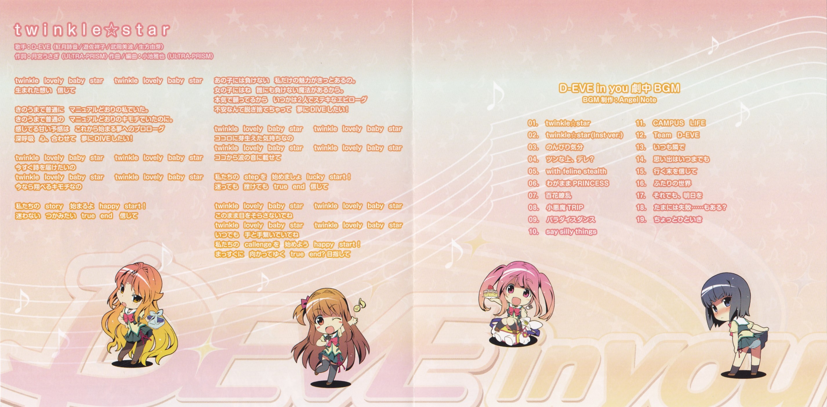 Vocals: D-EVE (Shion Akatsuki, Shoko Yusa, Minami Takaoka, Yume Ubukata)