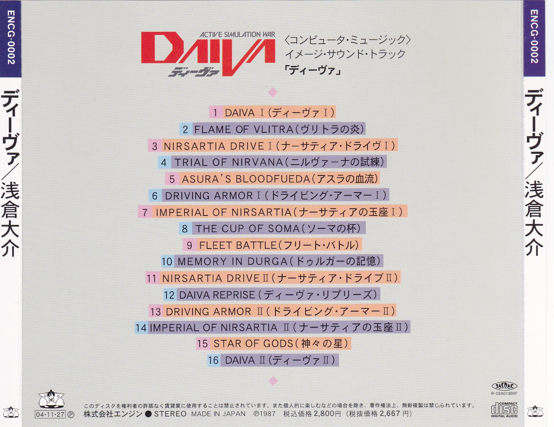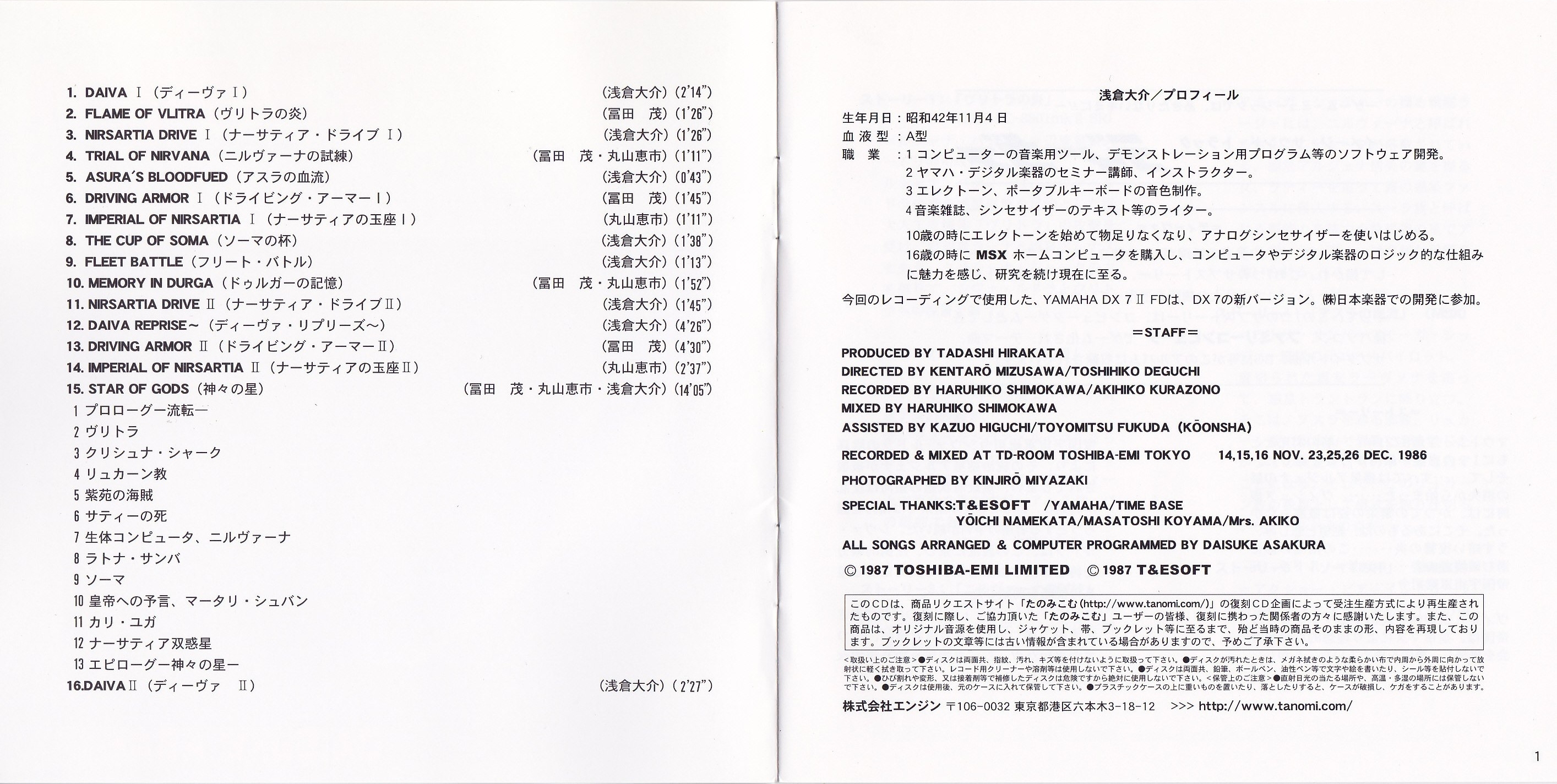 ALL SONGS ARRANGED & COMPUTER PROGRAMMED BY DAISUKE ASAKURA