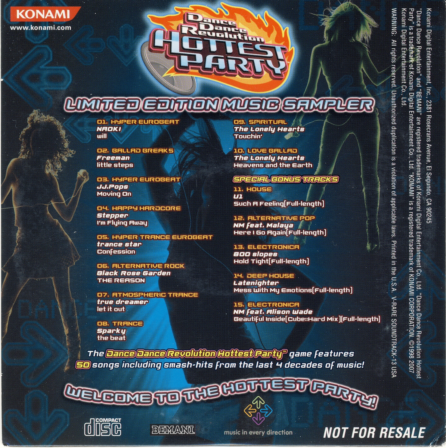"The DanceDanceRevolution Hottest Party™ game features 50 songs including smash-hits from the last 4 decades of music!"